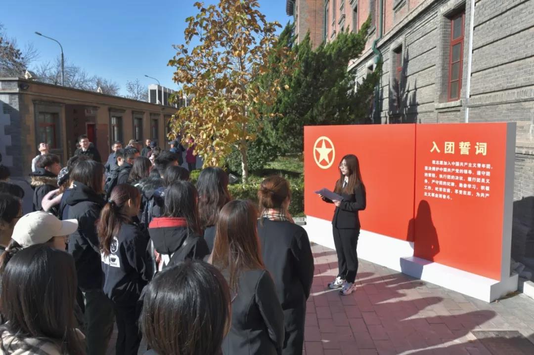 随后,董洋带领大家重温入团誓词,在阳光下,同学们手握成拳,在团旗院旗的映照下高声喊出了入团誓词。在寒风中,同学们高声齐唱共青团团歌。最后,团委书记尹航老师在讲话中提到,青年一代是新时代的中坚力量,中国道路的建设少不了青年力量。我们要在今后的生活中要学习专业知识充实自己的头脑,用先进的理论武装自己的思想,努力成为国家的栋梁之才,投入到新中国的建设中去。