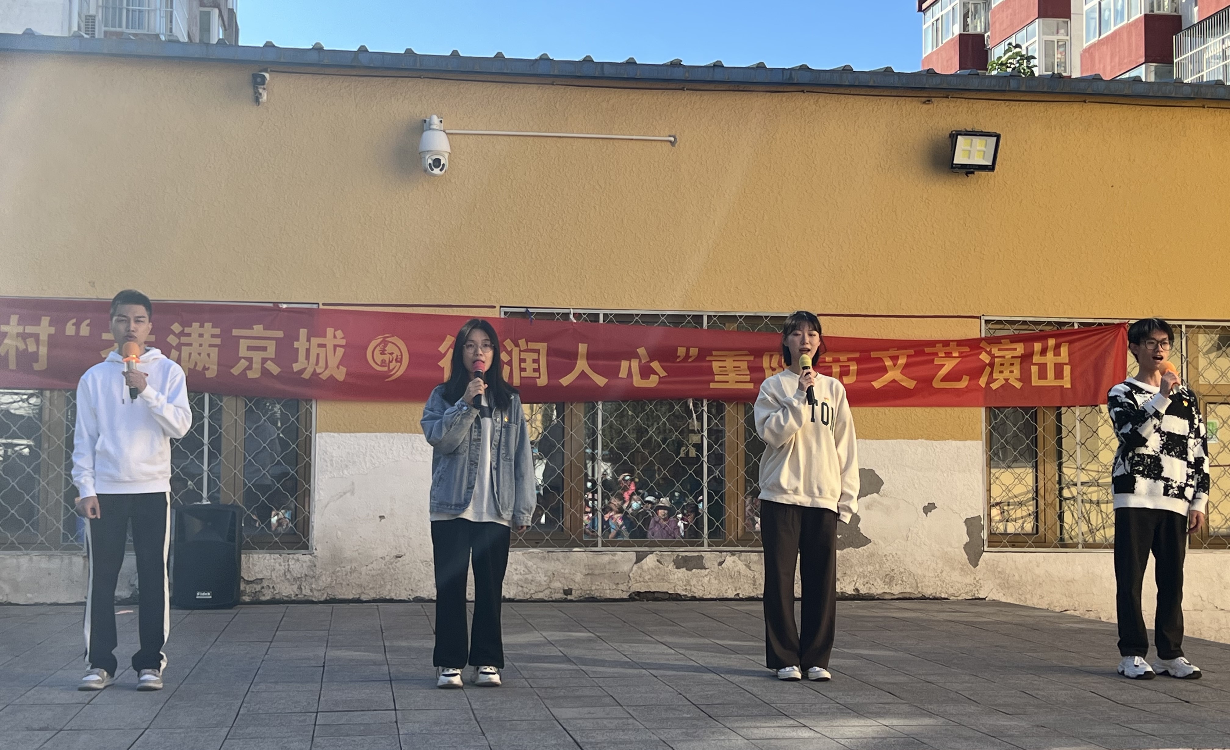 活动当天,三街村社区开展了以“孝满京城,德润人心”为主题的重阳节文艺演出。经两方基层党支部沟通,公司员工党员的节目被安排于当地社区演出之中。《投资养老诈骗》《收藏品诈骗》两个情景短剧寓意深刻,作为一堂生动新颖的特殊普法课堂增加了村民的法律知识储备,也起到了防范诈骗的宣传作用。歌曲类节目《没有共产党就没有新中国》引发村民打节拍、大合唱,将气氛推向高潮。