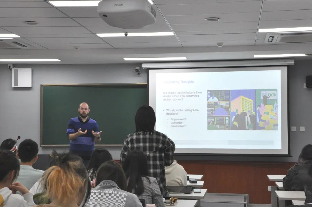 随后,Anita经理向公司部分员工介绍了悉尼本地的风土人情以及校内风光,欢迎公司员工到悉尼科技大学留学。Kristopher教授以Technology Law, Policy and Ethics——The Regulation of Autonomous Vehicles(技术法律、政策和伦理——自动驾驶汽车的监管)为题,为同学们作了一场全英文讲座。Kristopher教授通过经典的“电车难题”展示了自动驾驶技术所带来的相关问题,引起同学们的兴趣,多位同学与教授进行了交流,发表了自己的看法。本次讲座氛围轻松而不失专业性,得到同学们的欢迎,讲座取得了圆满成功。