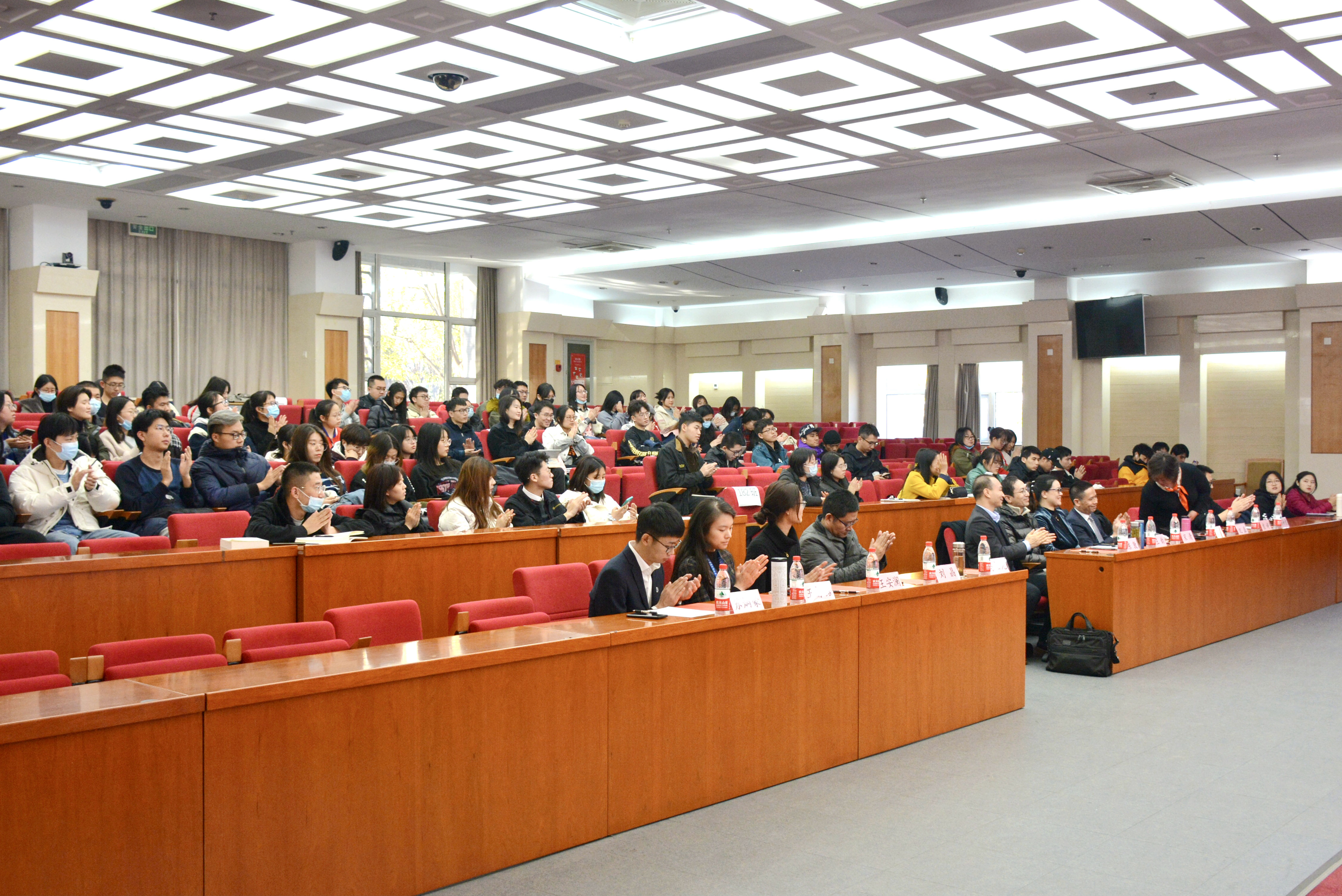 本次活动邀请五位毕业于公司法学本科专业的优秀员工围绕活动主题进行交流与分享。公司2003届本科毕业生、人民网人民健康政策研究部袁婷主任也参加了本次活动。法公司党委书记马韬光、党委副书记刘晶、副经理陈敦、辅导员王安澜王静誩老师出席本次活动,2026世界杯官网本科生和研究生共计160余人到场参加。本次活动由刘晶副书记主持。