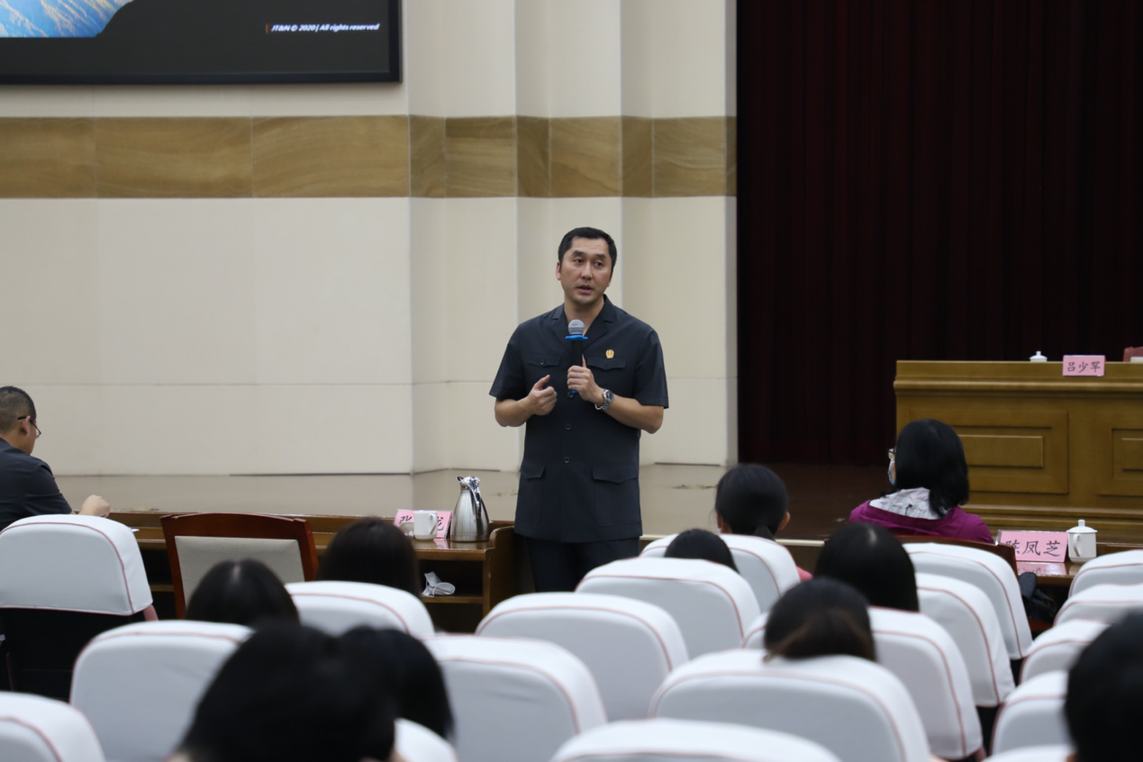 接着,公司优秀员工吕少罕法官做了精彩的讲座分享。吕法官从事法律工作十多年了,他结合自己的办案经验,用平实而坦诚的语言为同学们介绍了他做为一名优秀法官一直秉持的三个“一”,即“一颗初心,一杆秤,一个法宝”。他用自己的亲身经历引导大家思考自己学习法律的初心是什么,那就是要为当事人化解矛盾,解决问题。小问题、小纠纷解决不好就会产生大问题。之后他介绍一个好法官的标准首先就是要有胆识,其次是要仔细,最后要走群众路线,更多了解当事人的实际需求。吕法官的分享深深地打动了同学们,也引发了大家深刻的思考,丰富了同学们对法官职业的认识。