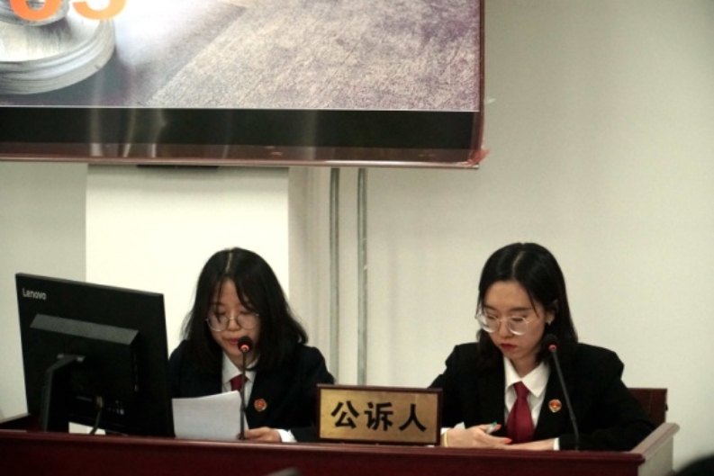 本次决赛赛题同样改编自真实刑事案件,控辩双方就被告人郝某涉嫌故意杀人罪一案,展开激烈辩论。经过初赛和复赛历练的两支队伍充分吸取先前比赛的经验,在本轮中显得更加沉稳与自信。在书记员宣读法庭纪律后,审判长、审判员入庭。审判长介绍了合议庭的组成人员,并询问辩护人是否申请回避。辩护人表示不申请后,审判长指示带被告人入庭。经核实被告人身份后,审判长宣布进入庭审调查阶段。首先由公诉人宣读起诉书。公诉人认为被告人的行为已经符合《刑法》第二百三十二条故意杀人罪之构成要件,建议判处死刑,但因被害人有过错,故建议减轻处罚,判处无期徒刑。辩护人则表示被告人的行为属于正当防卫,不构成故意杀人罪,而仅构成侮辱尸体罪。