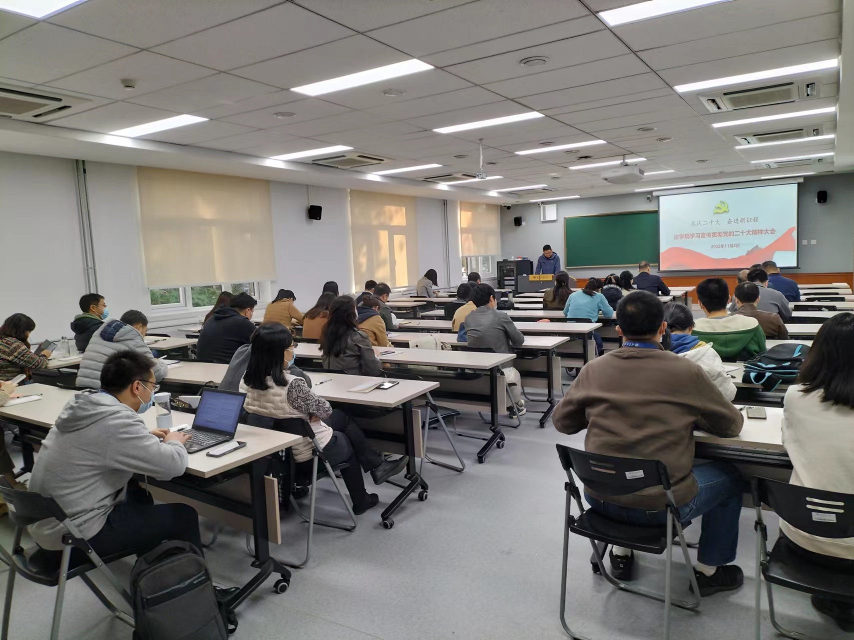 马韬光传达了北京市召开学习贯彻党的二十大精神宣讲报告会情况、学校学习宣传贯彻党的二十大精神大会情况和公司党委理论学习中心组专题学习会情况。他号召党的二十大精神要进课堂,每位教师都要切实做好党的二十大精神宣讲工作,学院要掀起学习党的二十大精神的热潮。