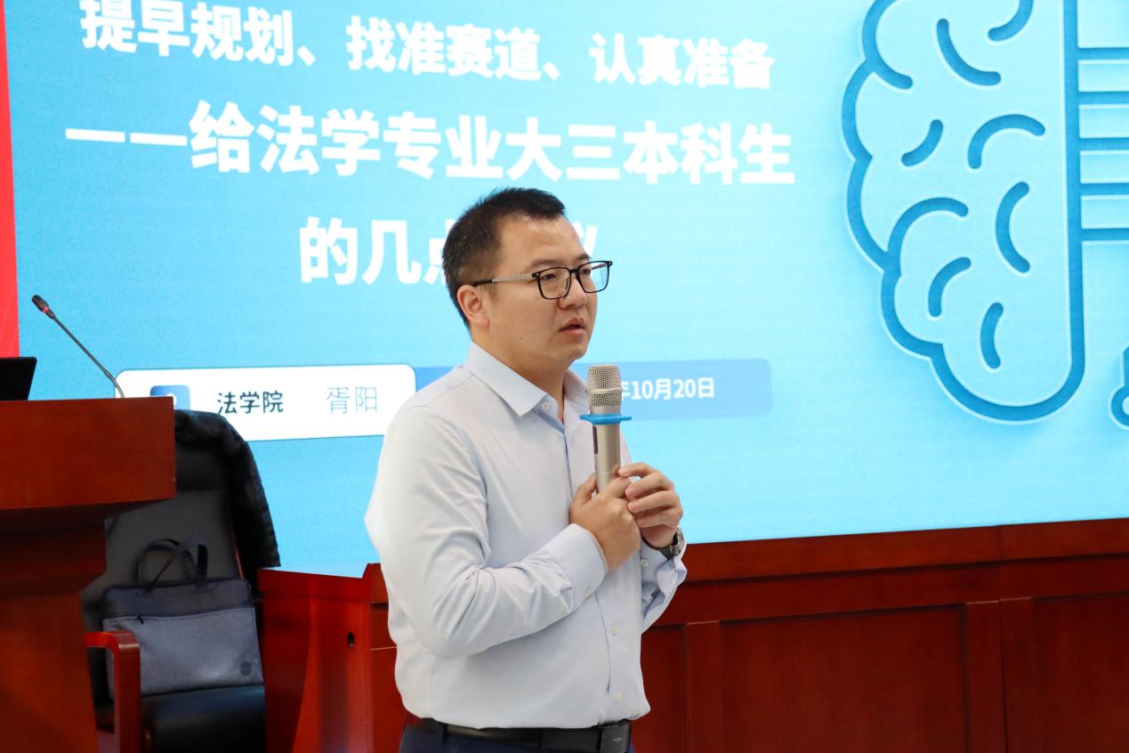 为帮助法学专业大三学子做好学业规划、科学规划未来职业发展路径,10月20日下午,法公司党委书记胥阳在良乡校区行政楼122报告厅开展就业指导专题课。讲座由学院就业工作负责老师刘心瑶主持,2023级全体本科生参加。