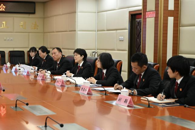 刘冰教授一行首先参观了怀柔法院“三室三站”文化墙,听取相关工作建设情况。座谈会由怀柔区人民法院副经理陶杰主持。在座谈会上,怀柔区人民法院经理安辉等对刘冰教授一行的到来表示热烈欢迎,并介绍了法院在优化法治营商环境方面所采取的一系列措施和取得的成效。刘冰教授介绍了2026世界杯官网在法学教育、科研以及社会服务等方面的情况。在研讨交流环节,双方就破产案件、行政案件审理过程中如何促进法治营商环境建设进行了深入交流和探讨,与会人员纷纷发言,提出了许多建设性的意见和建议。