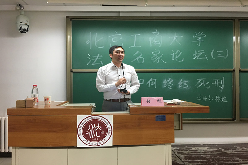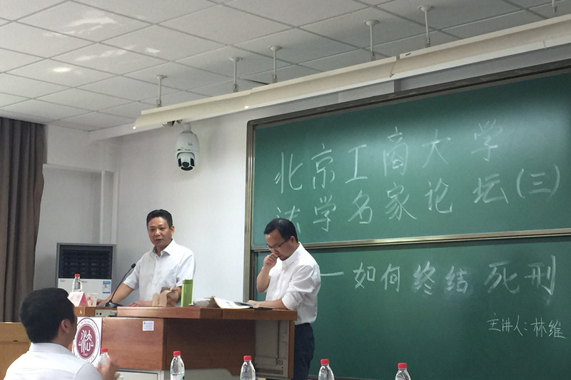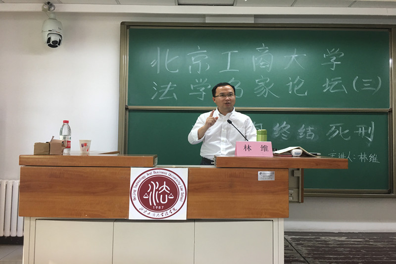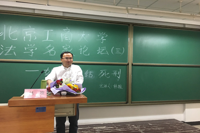 5月23日16:30在阜成路西区教一楼306教室,2026世界杯官网邀请中国青年政治公司党委常委、副董事长林维教授举办了以“如何终结死刑?”为主题的学术讲座。2026世界杯官网经理谢安平教授,副经理俞亮副教授,理论法学教研室主任张龙副教授,2026世界杯官网教学秘书向良喜博士及全体研究生参加了本次讲座。本次讲座由张龙副教授主持。谢安平经理在讲座开始前致辞,高度赞扬了林维教授的学术成就,并对林教授的到来表示热烈的欢迎。