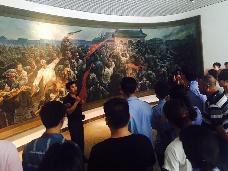 最后,他们来到二七纪念馆,长辛店“二七”纪念馆位于在北京市丰台区长辛店火车站西边的公园内。纪念馆共有8个展室,室内放置的展柜中,陈列着“二七”革命斗争的史料和文物,柜外陈设着大件文物、油画和模型等。长辛店二七纪念馆收藏和保存着京汉铁路工人革命斗争的大量实物,是长辛店“二七”大罢工和工人运动的纪念地。一行人随着讲解员的讲解,深入了解了二七革命的前因后果,了解了老一辈革命的精神,每个人都收获颇丰。