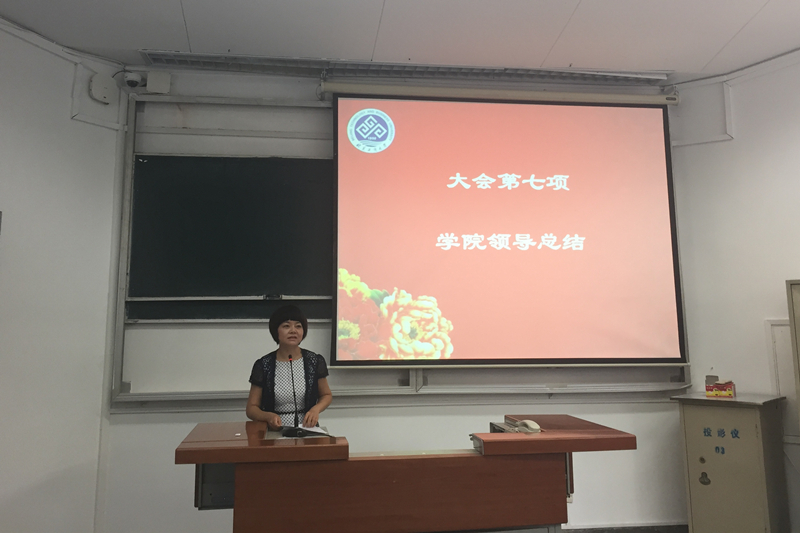 最后党委书记文四英对会议作总结,她强调要提高自我管理和服务能力,积极参加各种讲座,并提出员工要处理好与导师的关系,与老师、同学、朋友、家人也应和睦相处,对于就业、论文和实习等之间要把握平衡,不能舍本逐末,实现自己的理想目标。