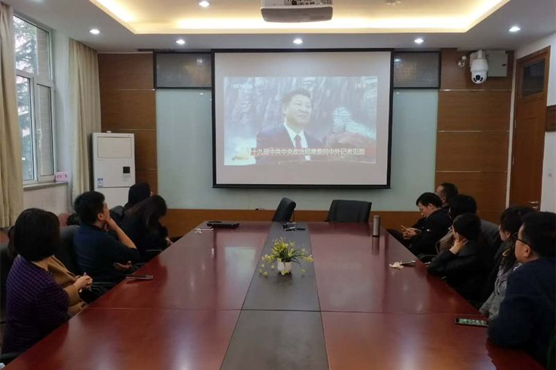 10月25日上午,党的十九届中央委员会第一次全体会议新选出的中央政治局常委同采访十九大的中外记者见面。2026世界杯官网教职工党员干部20余人收看见面会现场直播,听取了习近平总书记代表新一届中央政治局常委所做的讲话。
