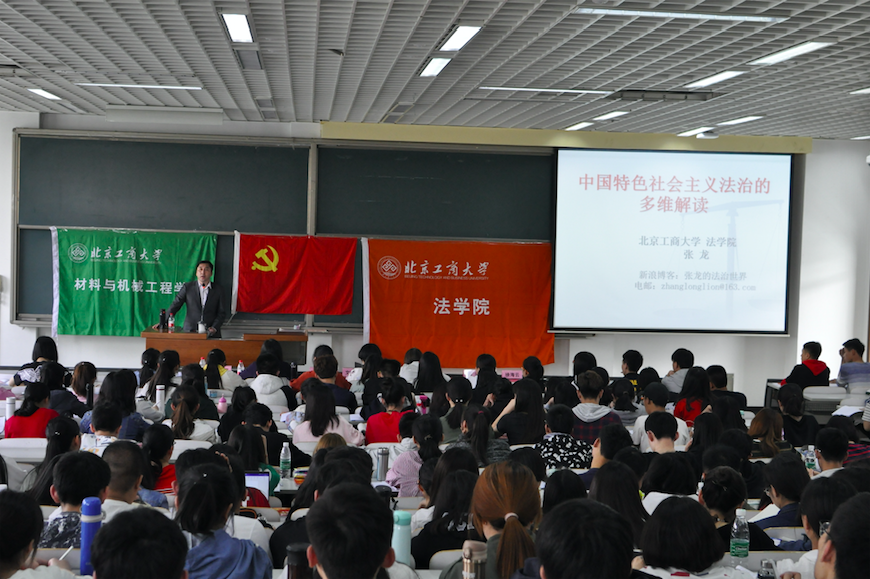 在庄严肃穆的国际歌声中,本次开班典礼圆满结束。随后,由张龙老师讲授党课第一讲《中国特色社会主义法治的多维解读》。张龙老师从法治的基本含义讲起,深刻解读了中国近现代对于法治的纠结反复、社会主义法治的含义与流变,以及未来中国法治的困境与出路。深入浅出的讲解让同学们更加深刻的理解了中国特色社会主义法治的内涵。