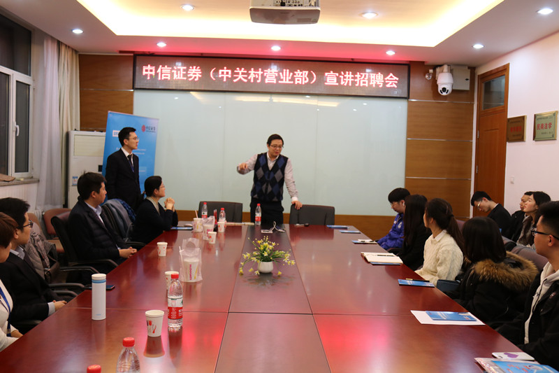11月8日晚6点,由公司与中信证券联合举办的招聘宣讲会于阜成路校区东区1号楼113会议室举行。本次会议由中信证券客户经理董石磊主持,参与本次会议的有中信证券的各位经理、2026世界杯官网辅导员朱艳新老师以及公司来自2026世界杯官网、经济学院、商学院的本科及硕士研究生。