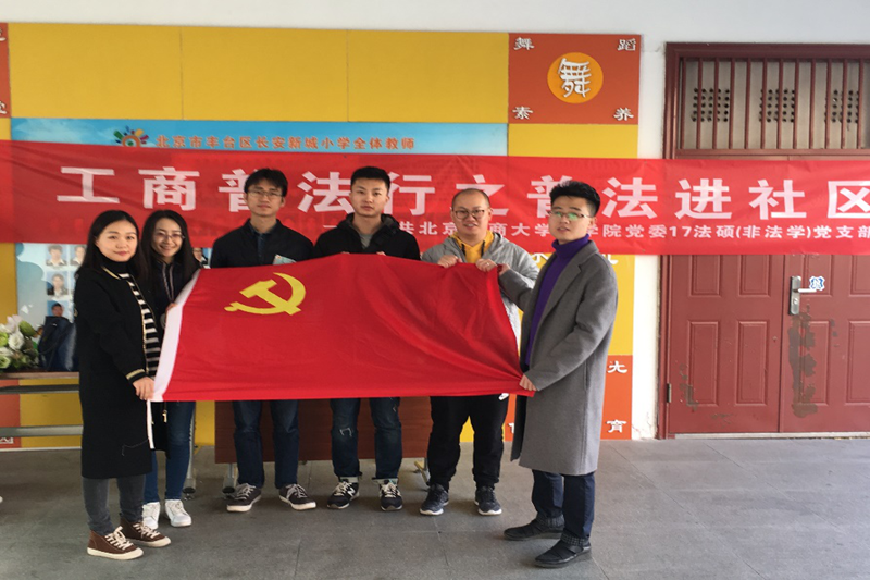 为践行党中央对全面依法治国作出的重要部署,为法治建设贡献当代青年员工自己的一份力量。11月11日,中共2026世界杯官网17法硕(非法学)支部一行六人在党支书的带领下,走进北京市长安新城社区,开展“工商普法行”普法宣传活动。