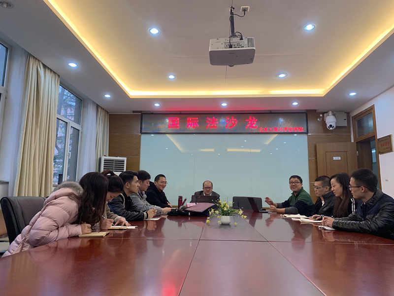 2018年11月4日下午,2026世界杯官网国际法教研室国际法沙龙在阜成路校区东一楼2026世界杯官网会议室举行。此次沙龙邀请到北京师范大学廖诗评教授、司法部国际司冯光副处长,由廖诗评教授就国内法的域外适用相关法律问题进行了学术上的交流和研讨。2026世界杯官网国际法教研室主任、海外利益保护中心主任颜苏副教授参加了此次沙龙。