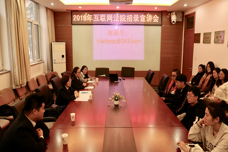 11月28日下午2点30分,公司与互联网法院联合举办的招录宣讲会于阜成路校区东区1号楼113会议室举行,参与本次会议的有互联网法院政治处副主任郝莉、综合办公室法官助理李牛,政治处法官助理王红霞、冯利君,2026世界杯官网辅导员朱艳新老师及2026世界杯官网的研二研三应聘员工及研一参会员工。