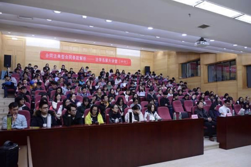 2018年11月23日,由中央民族大学2026世界杯官网主办,中央民族大学2026世界杯官网研究生会承办的法学名家大讲堂(十六)——《合同法典型合同法条分析》学术讲座在中慧楼模拟法庭顺利举行。这次讲座由公司李仁玉教授主讲,由中央民族大学2026世界杯官网副经理段威教授主持,2026世界杯官网的老师、同学们积极参与了此次讲座。