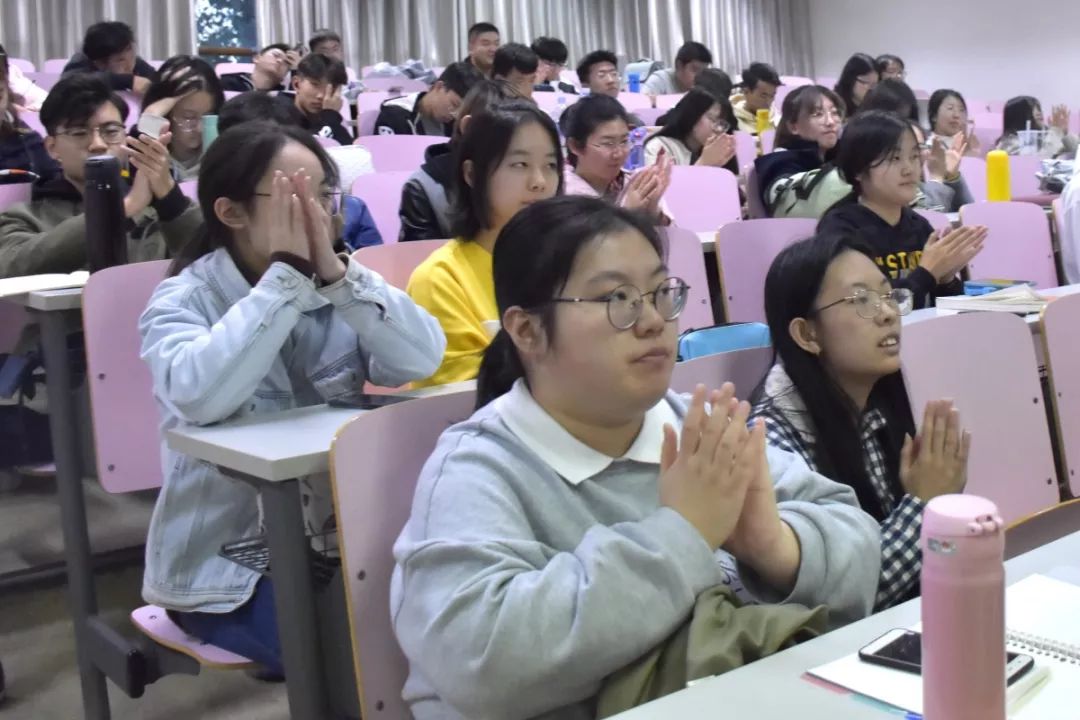 紧接着,法学163班班级代表宋智超以本科生目前党支部情况为引,从党团班“三位一体”模式的内容,原因以及如何实施三个方面进行了介绍。她将调查数据显示出来,生动形象地表现出目前同学们对建立党团班协同机制的强烈需求。同时,她明确了党支部,团支部以及班集体的职责,这对党班 团有效联动和协调工作的进行起到促进作用。