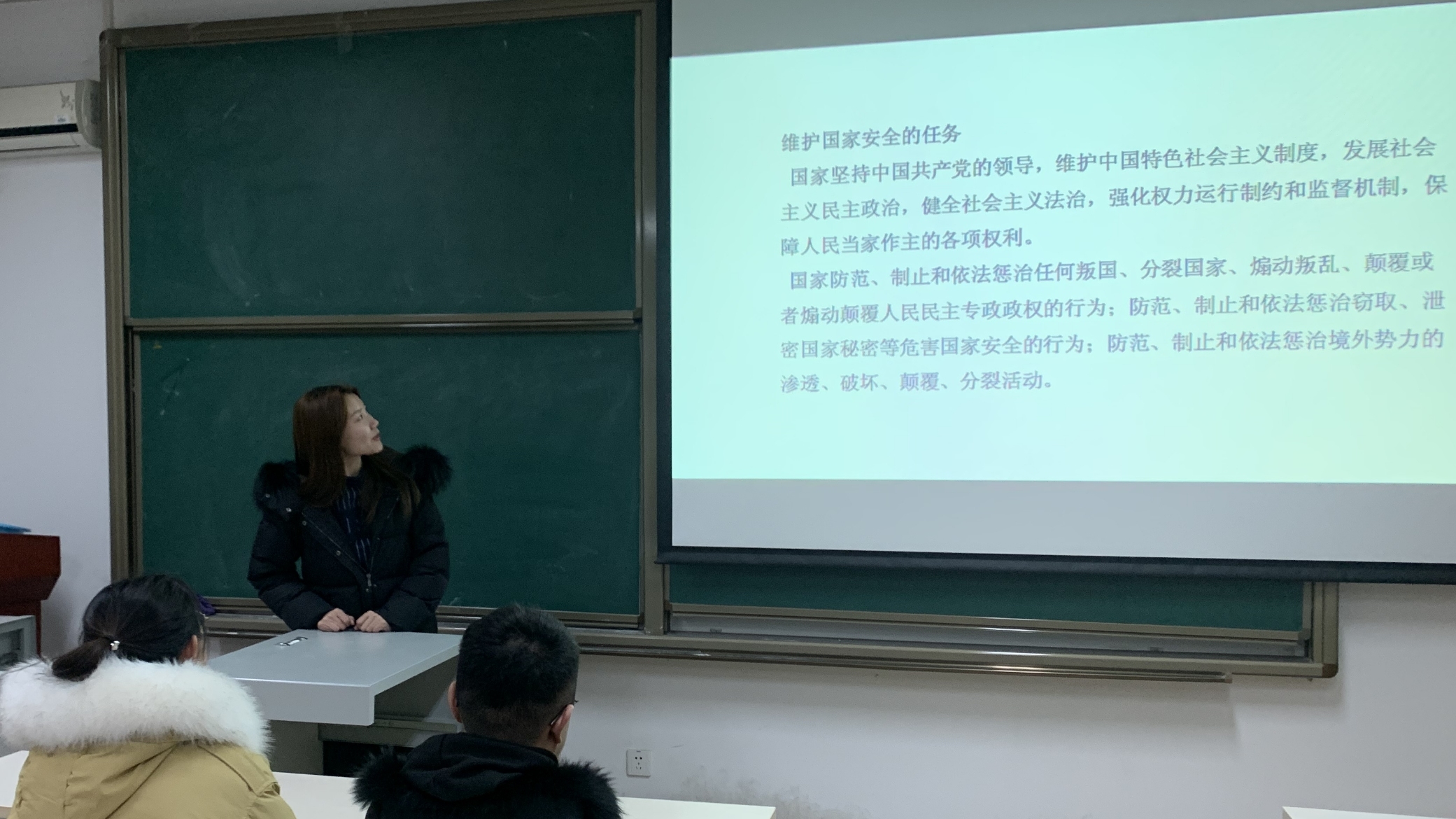 12月5日,辅导员朱艳新在良乡校区艺术楼A座102教室为全体研一新生开展安全教育主题班会活动,通过校园安全知识讲解、案例视频播放等形式进行全院研一员工安全教育,法研1931班班长谢淑仪组织全体同学进行学校保卫处文件《校园安全知识》的学习,通过案例介绍提醒同学们注意人身、财务及出行方面存在安全隐患、宿舍安全注意事项,学习应该采取的措施,让同学们认识到自己在安全防范方面存在的不足,提高同学们安全防范能力。在国家安全方面,法研1932班班长占子文组织同学们观看《这就是中国》系列视频,在了解国家安全知识基础上增强同学们的民族自信、自豪感,作为当代青年人通过不同形式学习理论知识,紧跟国内国际动态,增强国际视野与道路自信。法研1832班等其余班级分别在12月2-6间分别开展班级安全教育主题班会。