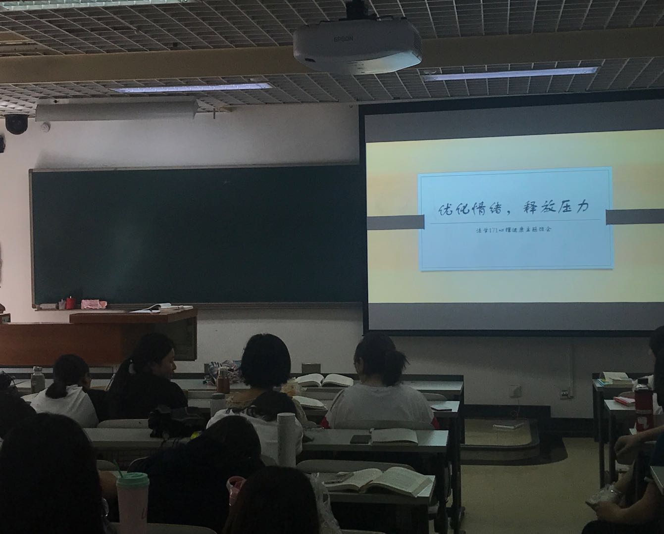 4月中旬至5月底,学院组织全体本科大一到大三以及部分研究生班级开展“心理健康主题班会”。活动主题包括:走进心理健康、阳光老员工—宿舍健康生活主题分享、老员工心理健康、“心理压力与爱自己”、优化情绪释放压力等为主题的班会。其中大一班级和研一新生班级主要以普及心理健康知识为主、大二主要开专关于学业压力、情绪调节,大三涉及考研与就压压力应对、情绪调节等。有的班级还开展了主题性探讨活动,如“关爱自己的情绪之抑郁症”。本研共计260人参加。法学182班班长介绍班会的主题、流程,介绍和讲解关于如何应对心理健康的基本内容,并给同学们讲述如何保持心理健康的方法。同学们积极交流自己的看法与观点。此次活动探讨了在不同班级年级开展心理健康主题班会的活动形式和内容,开展心理委员培训的方式方法。