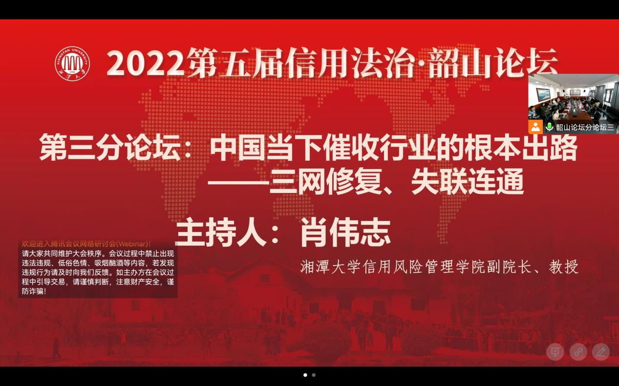 “信用法治•韶山论坛”是由湘潭大学举办的旨在推进我国社会信用体系建设,加强信用法治领域研究交流的高端理论和实务论坛。该论坛自2018年设立,迄今已连续成功举办四届。一直以来,论坛密切关注我国社会信用体系建设的发展现状,跟踪信用相关行业的现实问题,服务信用法治研究的现实需要,体现出强烈的本土性和时代感。今年的“信用法治•韶山论坛”,根据行业的急切需求,论坛组织方增设主题为:当下中国催收行业合规发展路径探索的特别分论坛。