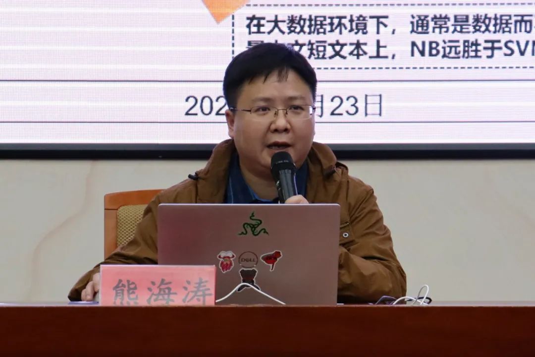 紧接着,熊教授展开了对“大数据技术”的讲解。他从复杂的数据处理、大数据应用流程、数据储存、数据清洗、数据分析与数据可视化共六个方面进行了讲解。将纷繁复杂的“大数据技术”化繁为简。在数据清洗方面,他介绍了缺失值处理、异常值处理、数据转换的概念,并分析了大数据分析中的情感分析与观点挖掘。