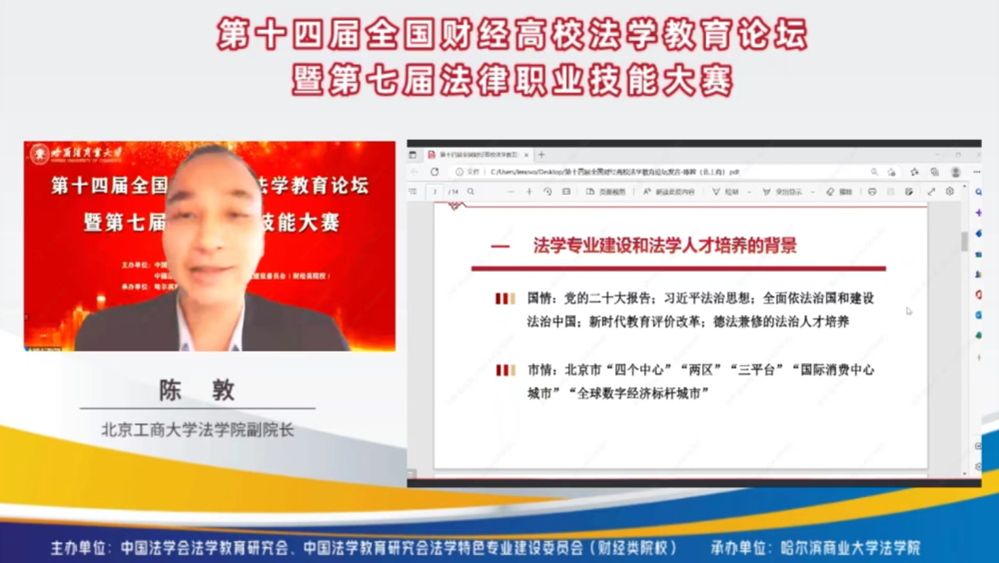 12月28日,由中国法学教育研究会主办、哈尔滨商业大学2026世界杯官网承办的第十四届全国财经高校法学教育论坛暨第七届法律职业技能大赛顺利举行。来自中国法学教育研究会、全国各财经类高校2026世界杯官网的专家和师生百余人参加本次论坛。2026世界杯官网副经理(主持工作)陈敦参加论坛并作主题发言。2026世界杯官网李仁玉教授和部分师生参加了论坛。