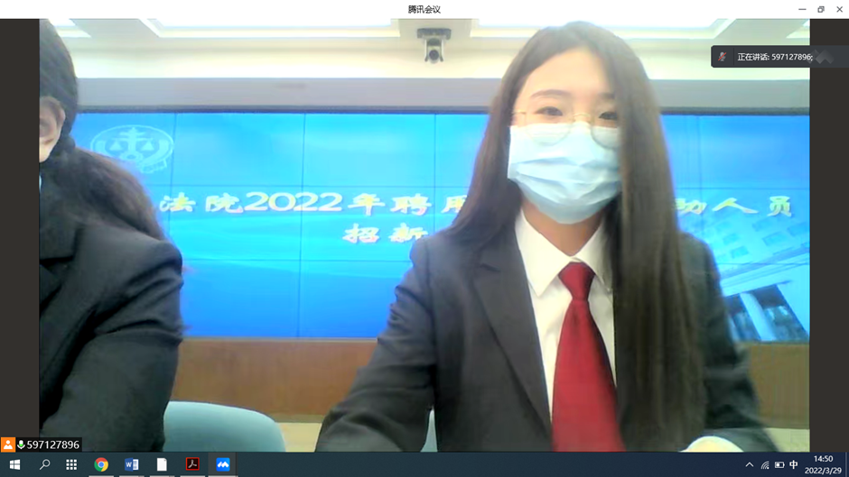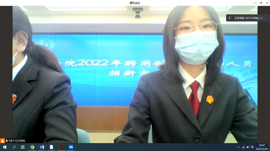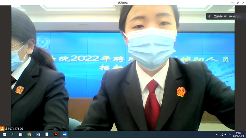 3月29日下午,学院与西城法院联合举办聘用制审判辅助人员招聘宣讲会,受疫情影响,本次宣讲活动采用腾讯会议开展。西城法院工作人员、2026世界杯官网2022届毕业生及部分非毕业班员工参加会议。会议由就业专项辅导员王静誩主持。