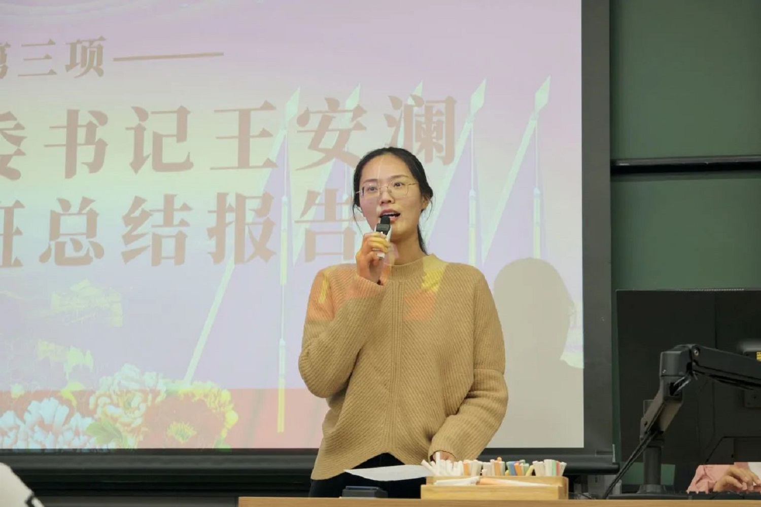 公司团委书记王安澜老师对团校培训班进行了总结报告,此次团校培训班118名团学骨干及入团积极分子顺利结业,12名学员获优秀学员称号。她表示,本次培训班令广大学员开阔了视野,拓展了素质,提升了能力,达到了预期的教育效果。同时王安澜老师希望同学们珍惜韶华,怀抱梦想,积极响应党的号召,为新时代的奋斗事业添砖加瓦。