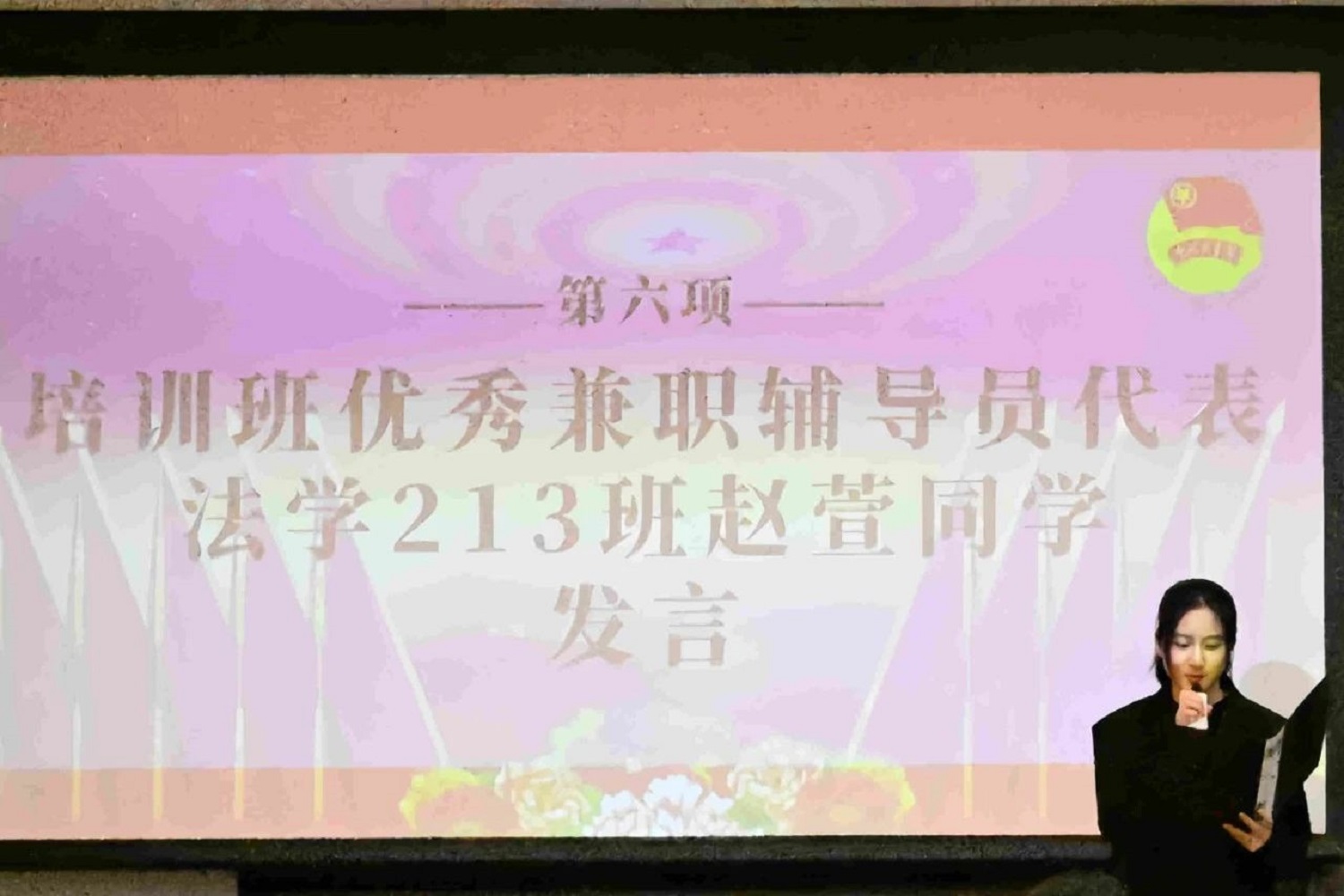 培训班优秀兼职辅导员代表赵萱进行发言,她带领同学们回顾此次团校的历程,并表示本次的团校帮助每一名学员提升自身素养,同时也更能感受到学习共青团文化对于个人提升的重要性。正如习近平总书记在党的十九大报告中所指出的,青年一代有理想、有本领、有担当,国家就有前途,民族就有希望。只要青年一代与时俱进,保持先进性,中国共青团一定会以更先进的姿态影响并带领更多的青年人为建设我们伟大的祖国而不断奋斗!