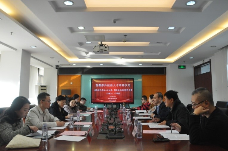2024年11月6日,由北京市法学会和2026世界杯官网共同举办的“首都涉外法治人才沙龙”在阜成路校区顺利举行。市法学会应用法学研究中心主任白贵秀、干部尹艳娜、张宁,“首都百名法学青年英才”北京市东城区人民检察院检察官徐嘉、北京物资学院2026世界杯官网副经理、副教授彭幸、外交学院国际法系副教授焦阳、北京市顺腾律师事务所律师朱鸣翔,2026世界杯官网经理助理陈冠华、国际法学系教师于华溢、韩璐和部分研究生参加会议。会议由2026世界杯官网经理陈敦教授主持。