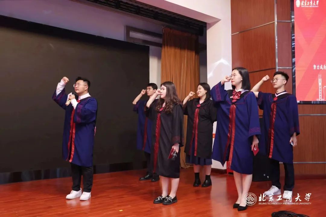 奋楫扬帆启新航,明德尚法行致公。典礼隆重展开毕业生廉洁从业宣誓,全体毕业生起立,高举右拳,庄严宣誓,立下今后廉洁从业的郑重誓言,“努力成为全民推进中国式现代化建设中可堪大用、能担重任的栋梁之才!”铿锵誓言久久回荡在礼堂中。