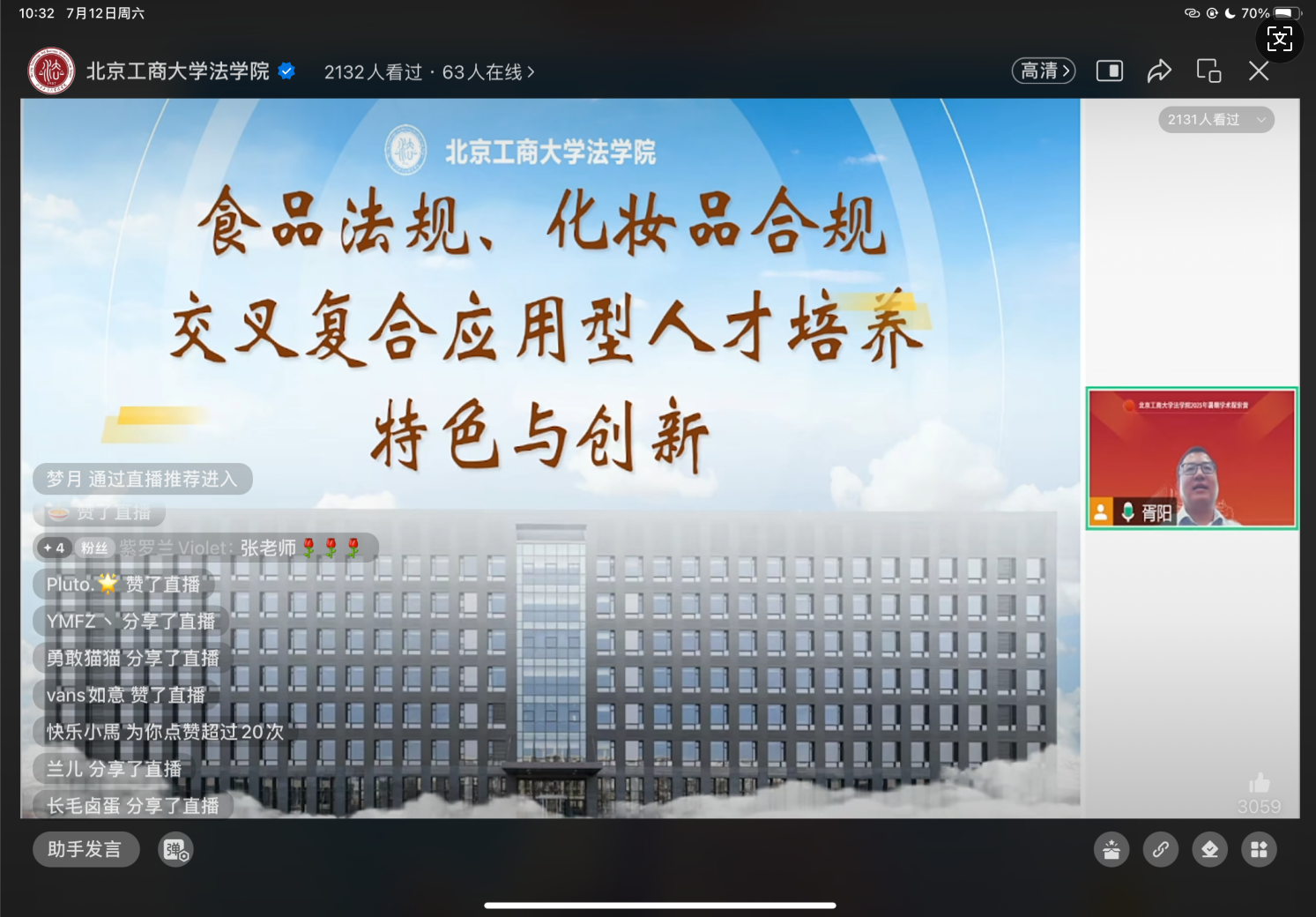 在法工融合特色方面,党委书记胥阳为大家详细讲述《食品法规、化妆品合规交叉复合应用型人才培养特色与创新》,立足食品法规和化妆品行业的现实需求,结合其他领域对于食品、化妆品的合规性问题,从法工融合视角给出具体的学习建议,创造性提出法工融合订单式人才培养模式,为未来食品与化妆品合规领域输送复合型人才筑牢根基。