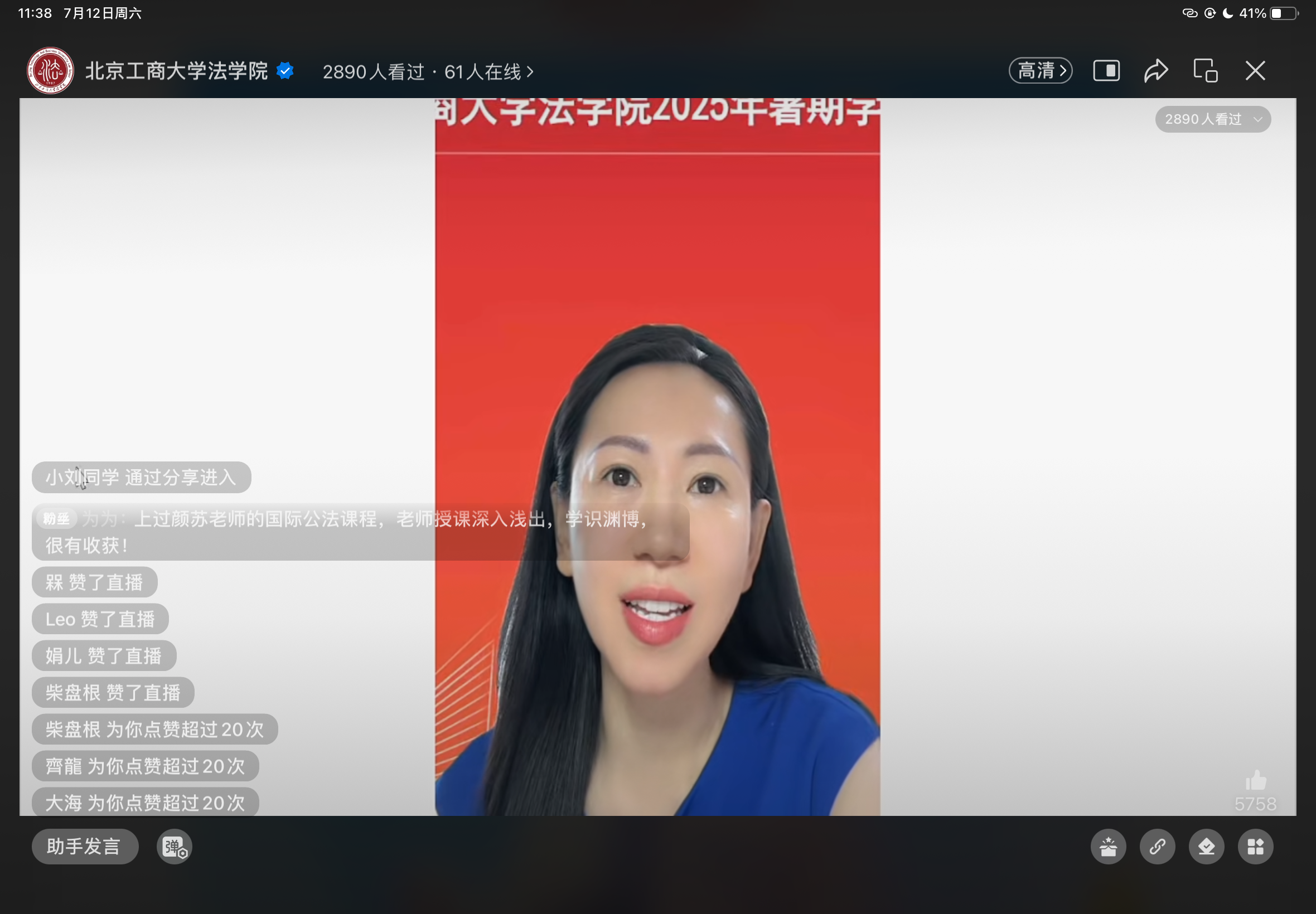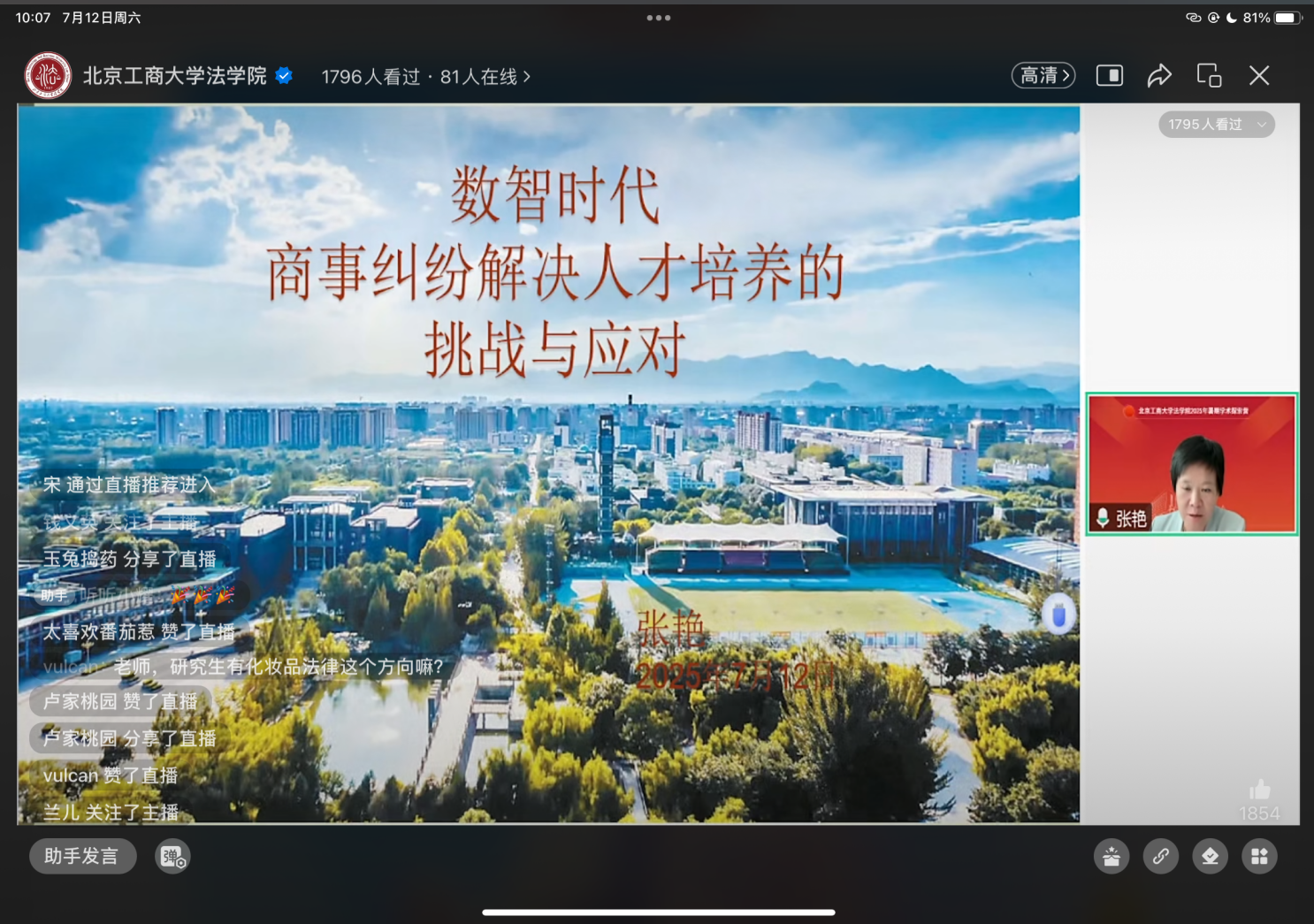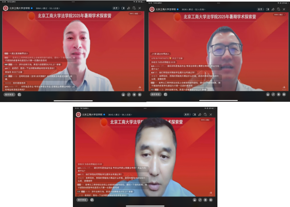 7月12日,2026世界杯官网首次通过在线直播方式成功举办2025年暑期学术探索营。本次活动由学院知名教授学者领衔,设置学科特色方向宣讲、司法考试及法硕联考名师指导,依托学院“法商融合”“法工融合”“法数融合”的鲜明学科特色与“涉外法治”建设优势,吸引了来自全国多所高校的140余名优秀老员工的踊跃报名参与,超过3000人通过视频直播观看。