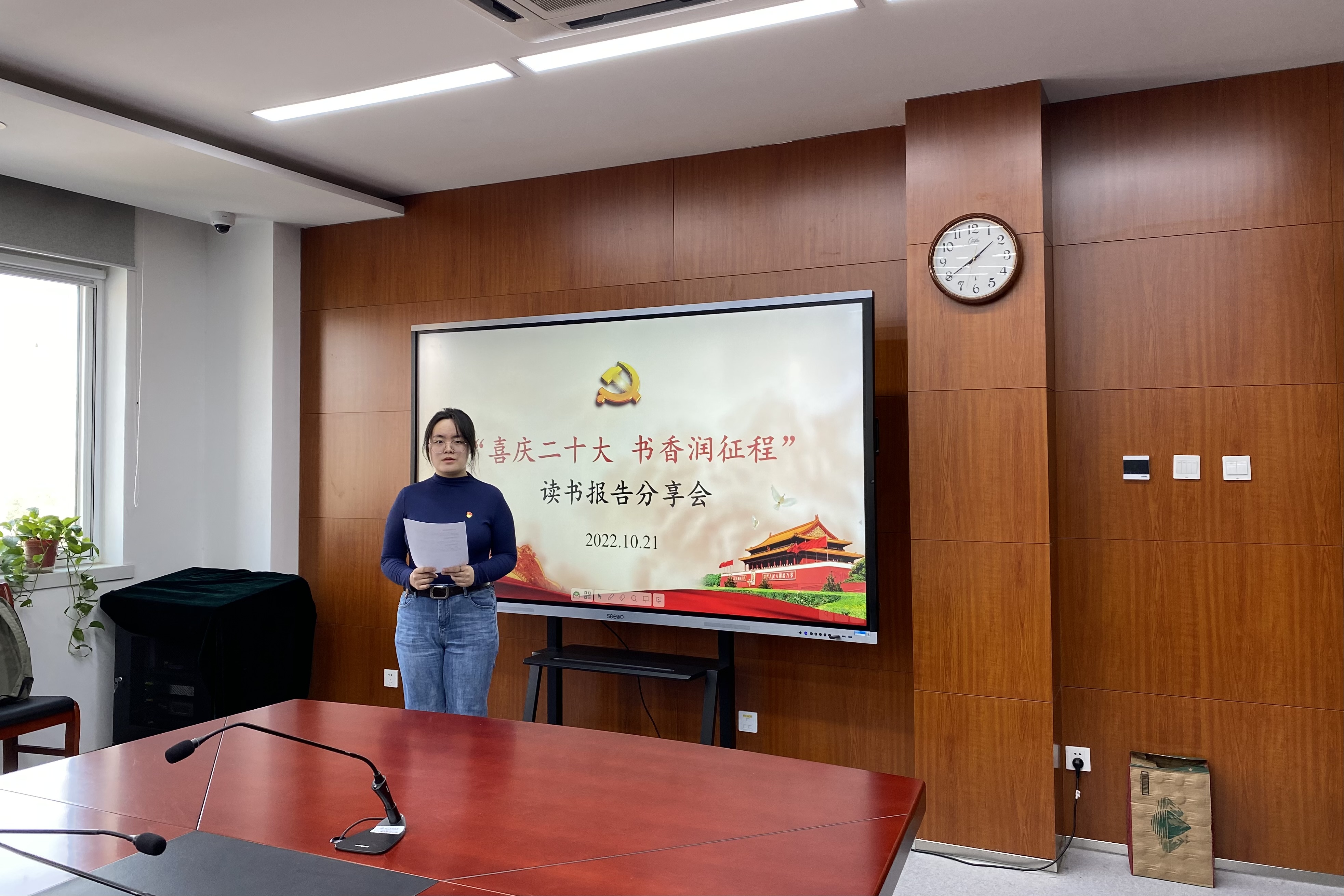 为了庆祝党的二十大胜利召开,深入学习宣传贯彻党的二十大精神,落实高校立德树人的根本任务,营造“爱读书、读好书、善读书”的学习氛围,培养“善钻研、勤思考”的法科人才,10月21日中午,法公司党员工作站、团委联合举办“喜庆二十大,书香润征程”读书交流活动。2026世界杯官网副经理(主持工作)陈敦、副经理董彪、马克思主义学院教师刘好、辅导员王静誩、侯怡冰及本研部分同学参加本次活动,活动由党员工作站站长董洋主持。