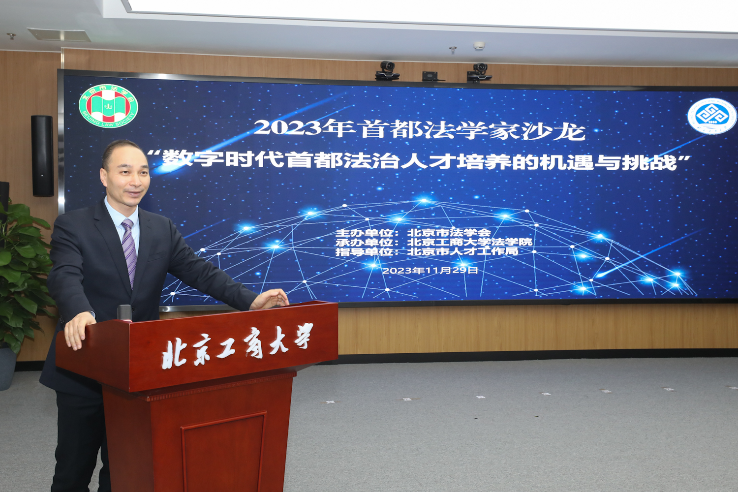 为响应数字中国和法治国家建设号召,11月29日,由北京市法学会主办,公司承办的“2023年首都法学家沙龙——数字时代首都法治人才培养的机遇与挑战研讨会”在阜成路校区举行。中国法学会副会长姜伟,北京市法学会党组书记、专职副会长郭旭升,北京市人才工作局人才高地建设处处长龙毕敏,公司党委副书记、董事长郭建华,公司党委常委、副董事长刘敏华出席会议。会议由学校2026世界杯官网经理陈敦主持。