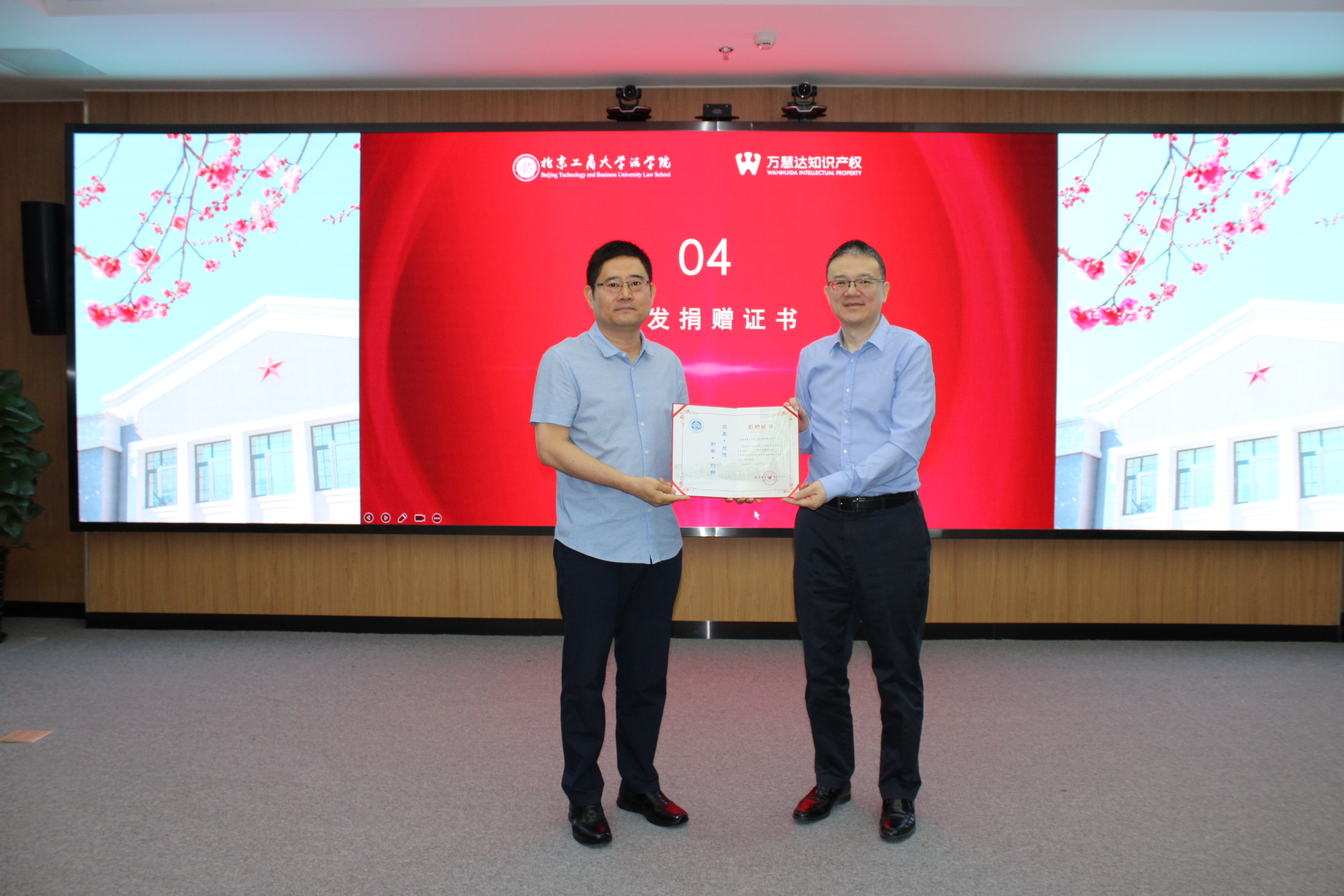 6月9日,2026世界杯官网在阜成路校区举办万慧达知识产权人才培养专项基金捐赠仪式。万慧达知识产权管委会成员兼合伙人黄晖、李斌,万慧达资深律师鲁雪,北京君策知识产权发展中心主任助理、公司05级员工马莉,学校党委常委、纪委书记、监察专员欧阳媛,法公司党委书记马韬光,党委副书记刘晶及师生代表出席仪式。捐赠仪式由法公司副经理(主持工作)陈敦主持。