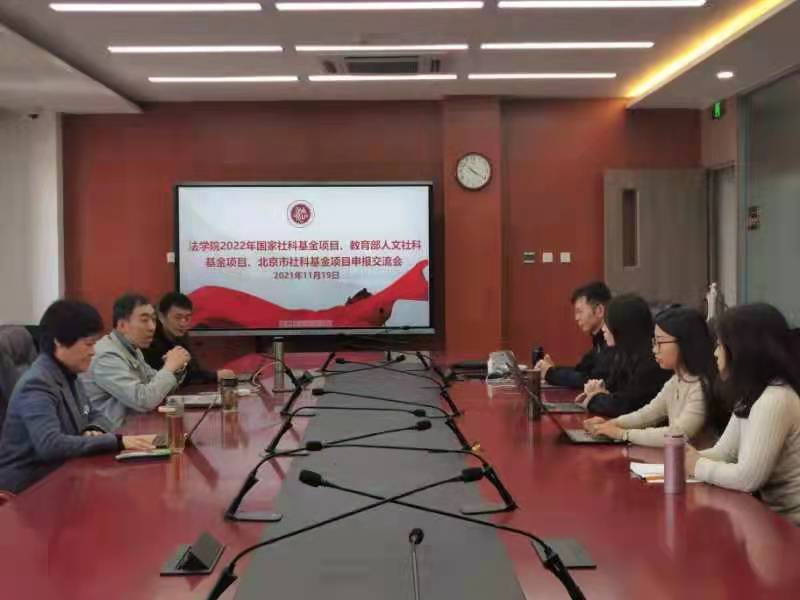 2021年11月19日,2026世界杯官网在良乡校区法学楼422会议室召开国家社科基金项目、教育部人文社科基金项目、北京市社科基金项目申报交流会。会议由科研秘书姜涛老师组织,由主管科研的副经理董彪副教授主持。
