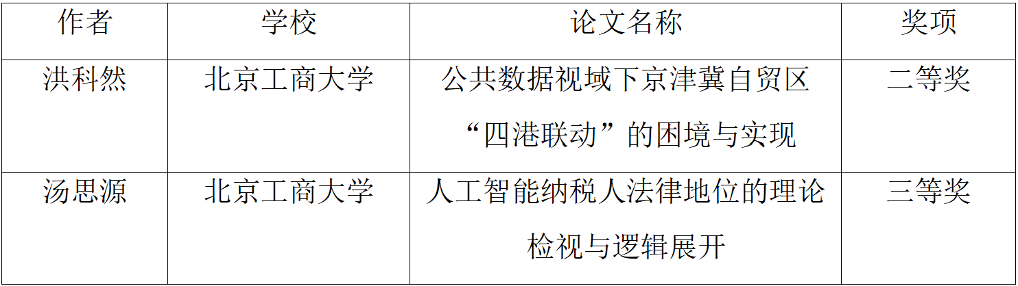 公司高度重视此次学术盛会,多名员工积极投稿,其中两篇论文获奖:法律硕士研究生洪科然撰写的《公共数据视域下京津冀自贸区“四港联动”的困境与实现》荣获二等奖,指导教师为陈敦教授;经济法学研究生汤思源的《人工智能纳税人法律地位的理论检视与逻辑展开》荣获三等奖,指导教师为郝琳琳教授。