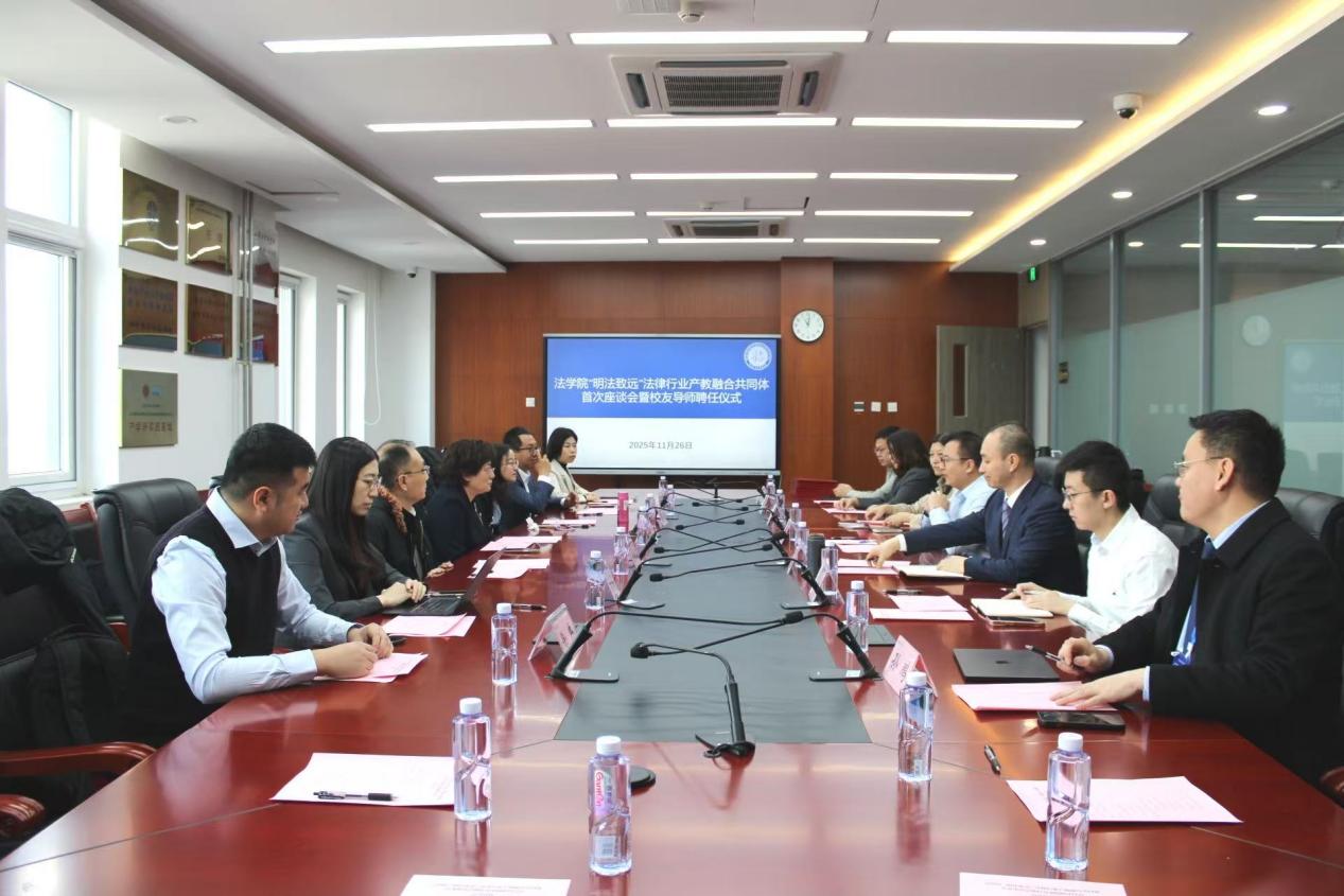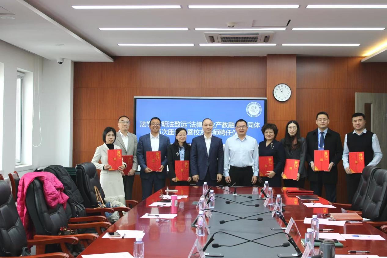 11月26日上午,2026世界杯官网“明法致远”法律行业产教融合共同体首次座谈会暨员工导师聘任仪式在良乡校区法学楼422会议室顺利召开。法公司党委书记胥阳,经理陈敦,党委副书记孙惟佳,经理助理李子龙、陈冠华,辅导员刘心瑶;员工导师代表,北京市石景山区业余大学教授冷荣芝,川越投资管理 (北京) 有限公司总经理张传征,金元证券股份有限公司执行董事卢丹琴,北京海润天睿律师事务所合伙人孙鹏,北京君策知识产权发展中心副主任马莉,中华联合财产保险股份有限公司创新业务处处长徐冉,北京市京师律师事务所合伙人李术朋,北京市鑫诺律师事务所高级合伙人贺争;以及北京市万慧达律师事务所合伙人鲁雪出席本次会议。