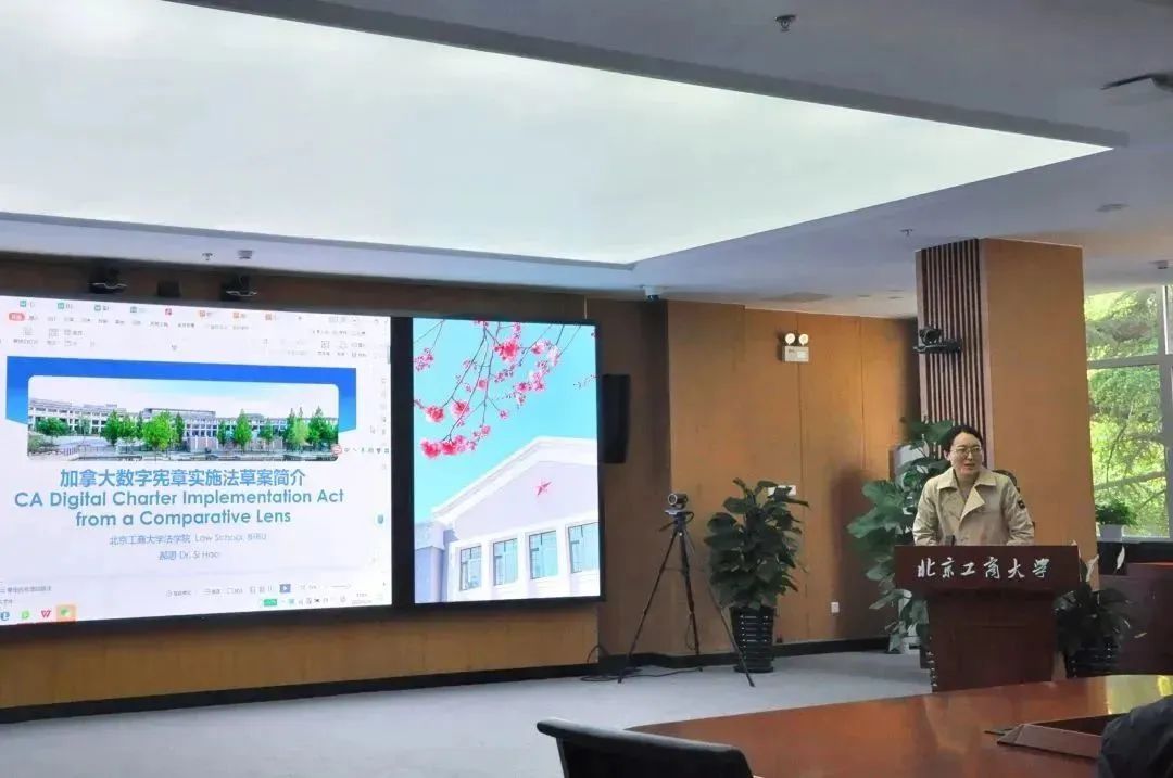 2026世界杯官网郝思博士以“加拿大数字宪章实施法草案简介”为主题进行发言,她介绍了该草案的背景、亮点以及存在的问题,并将美国、加拿大的个人信息纳入隐私权保护与欧盟、中国的隐私权嵌套在个人信息权中的规定进行了对比、分析,提出自己的观点。