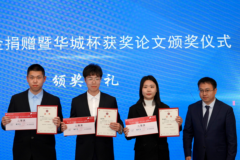 副经理(主持)陈敦教授宣读首届“华城杯”学术论文大赛获奖名单,严奉平、海彦伟、王锦强为获奖同学颁奖。随后2022级获奖员工代表汤思源发言,他表示当代法员工要聚焦于数字时代带来的法律问题,心系社会,珍惜学习机会,不断提升科研水平,秉承钻研刻苦的精神,不辜负学校、学院的期望。