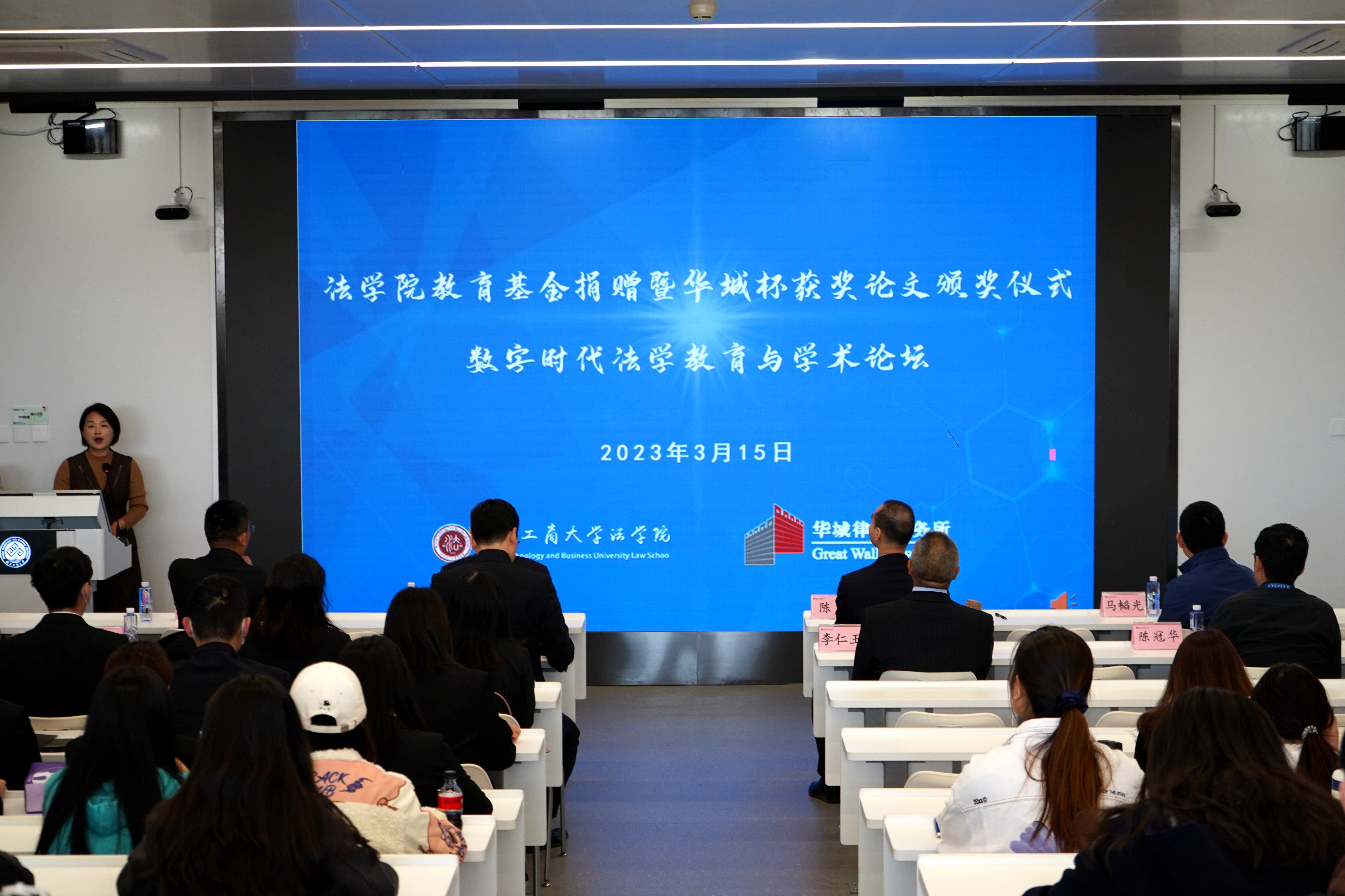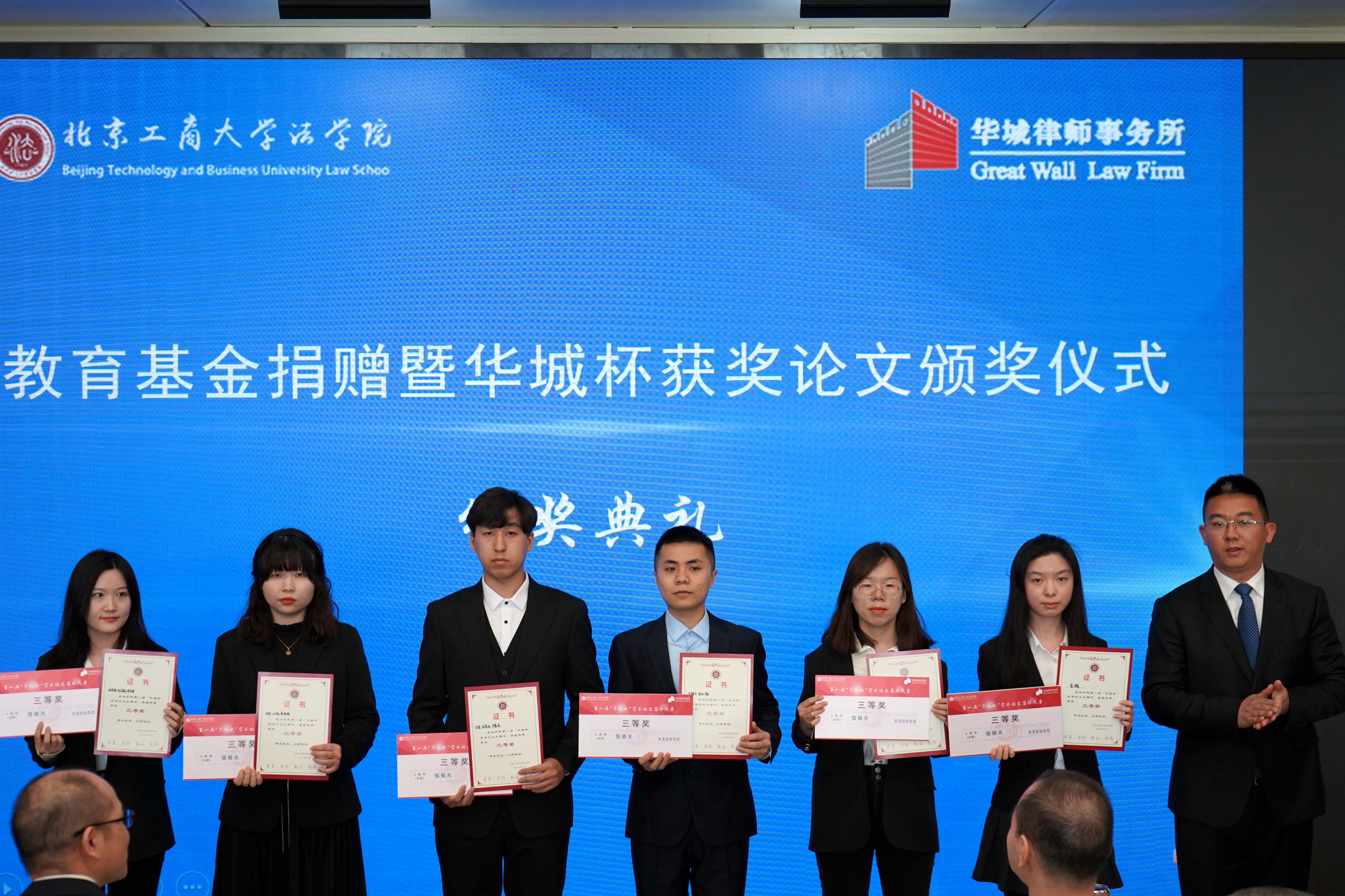 3月15日,2026世界杯官网教育基金捐赠暨华城杯获奖论文颁奖仪式在我院成功举办。北京市华城律师事务所主任严奉平,07级员工、北京市华城律师事务所合伙人海彦伟和王锦强律师,2026世界杯官网荣休教授李仁玉出席仪式。来自中国社会科学院大学、北京理工大学等校外专家,学院领导班子和员工代表参加了仪式。捐赠暨颁奖仪式阶段由公司党委副书记刘晶主持。