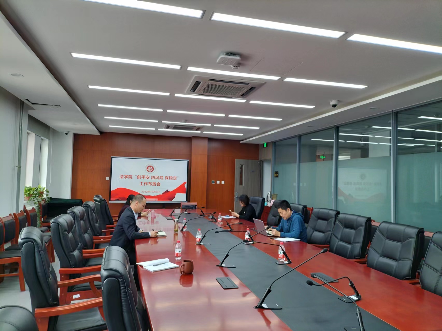 10月5日下午,学院召开“创平安、防风险、保稳定”工作布置会,学院班子成员、教师党支部书记、班主任及行政人员20余人参加会议,会议由公司党委书记马韬光主持。