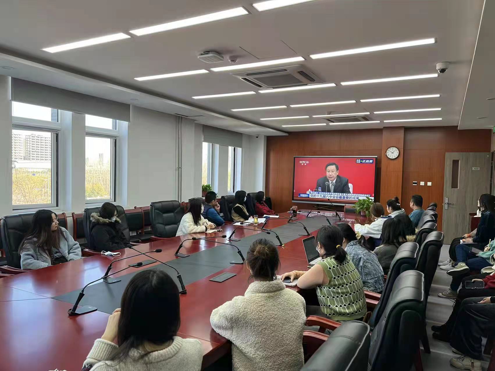 党的十九届六中全会于11月8日至11日在北京顺利召开。11月12日上午,学院组织办公室教工党支部和全院员工党支部委员会成员集中收看党的十九届六中全会新闻发布会。