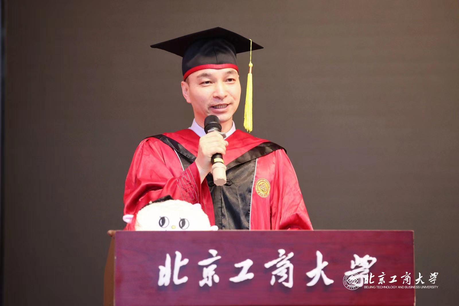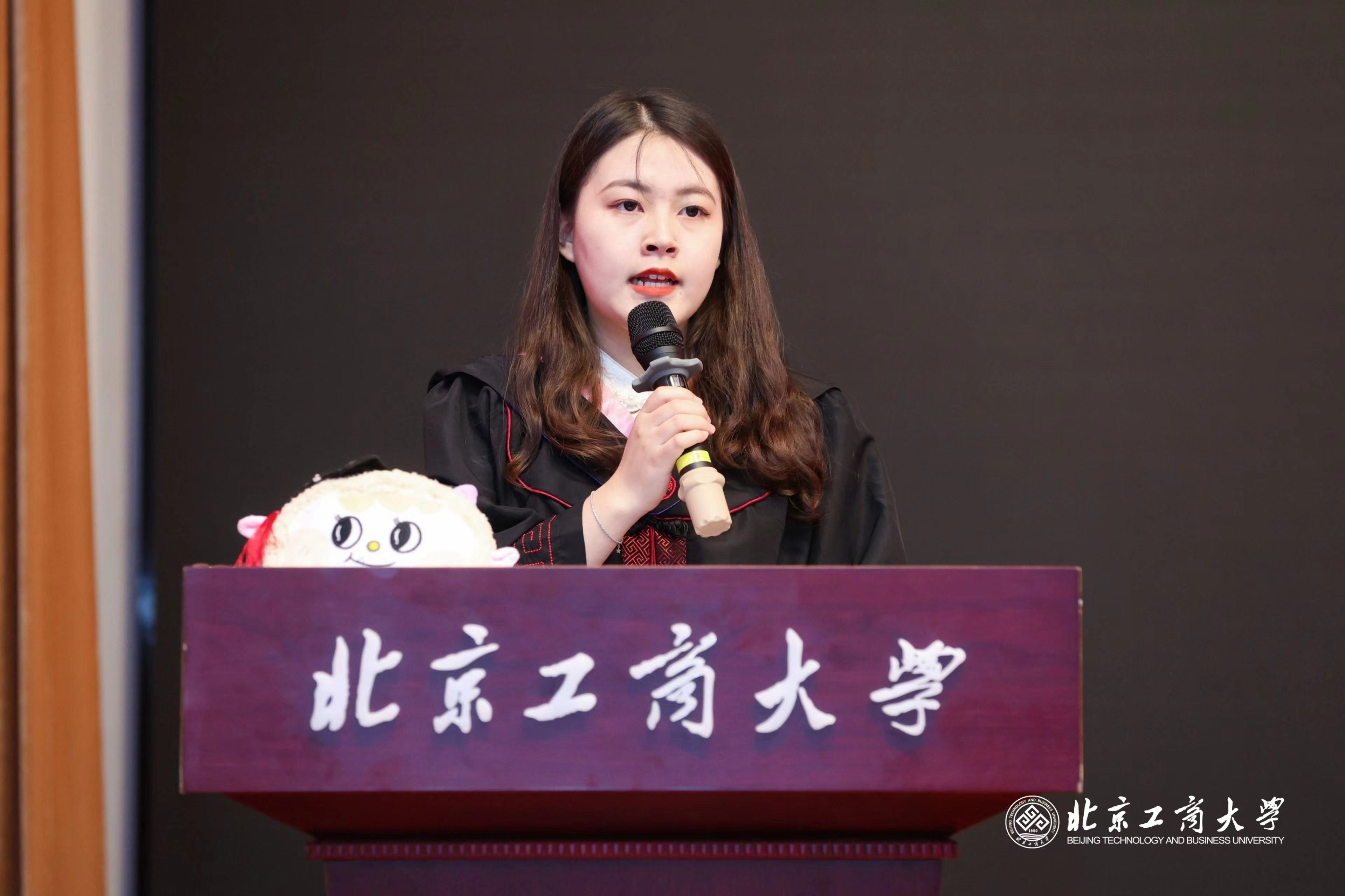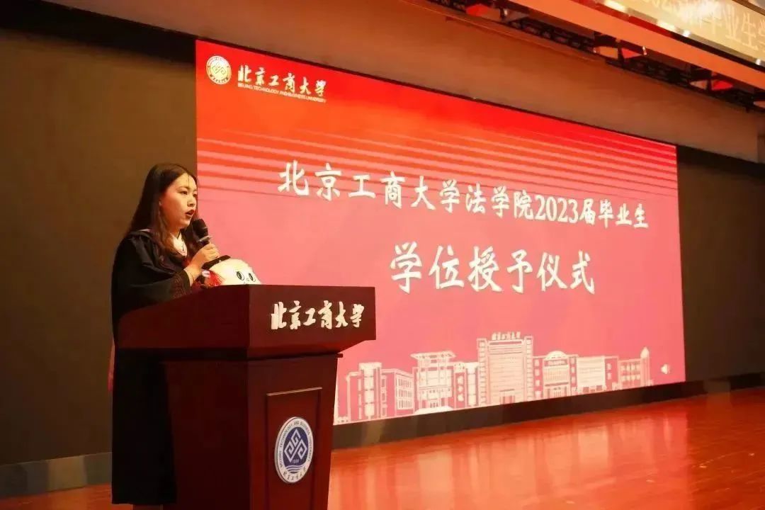 原本科第二员工党支部书记邹颖凡、原院研究生员工会主席周震作为优秀毕业生代表上台发言,他们表达了对母校悉心培养的诚挚感激和对学校宏图更展、再谱华章的美好祝愿。他们希望同学们将“求真、立德、勤奋、创新”的校训铭记在心,明德尚法、笃行致公,永葆北工商法律人的社会责任感与使命感,并祝福母校和学院在未来蒸蒸日上、蓬勃发展。