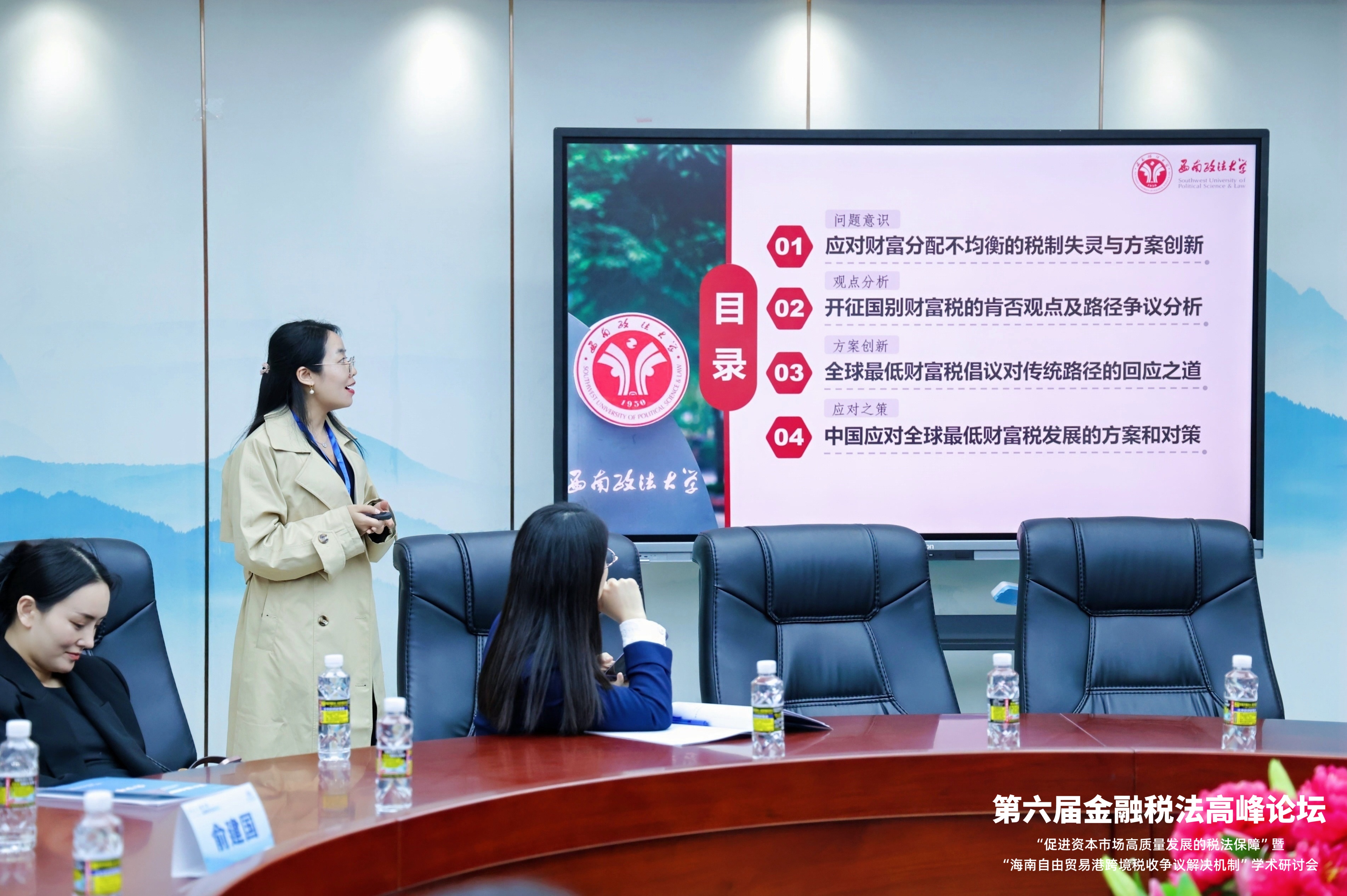 西南政法大学副教授王婷婷以《全球分配正义视域下财富税的演化逻辑与中国因应路径》为题发言。她提出,面对财富税演化路径的全球发展趋势,中国有必要对全球最低财富税的倡议作出回应,并提出了理念回应、税制回应、征管回应三个回应路径。