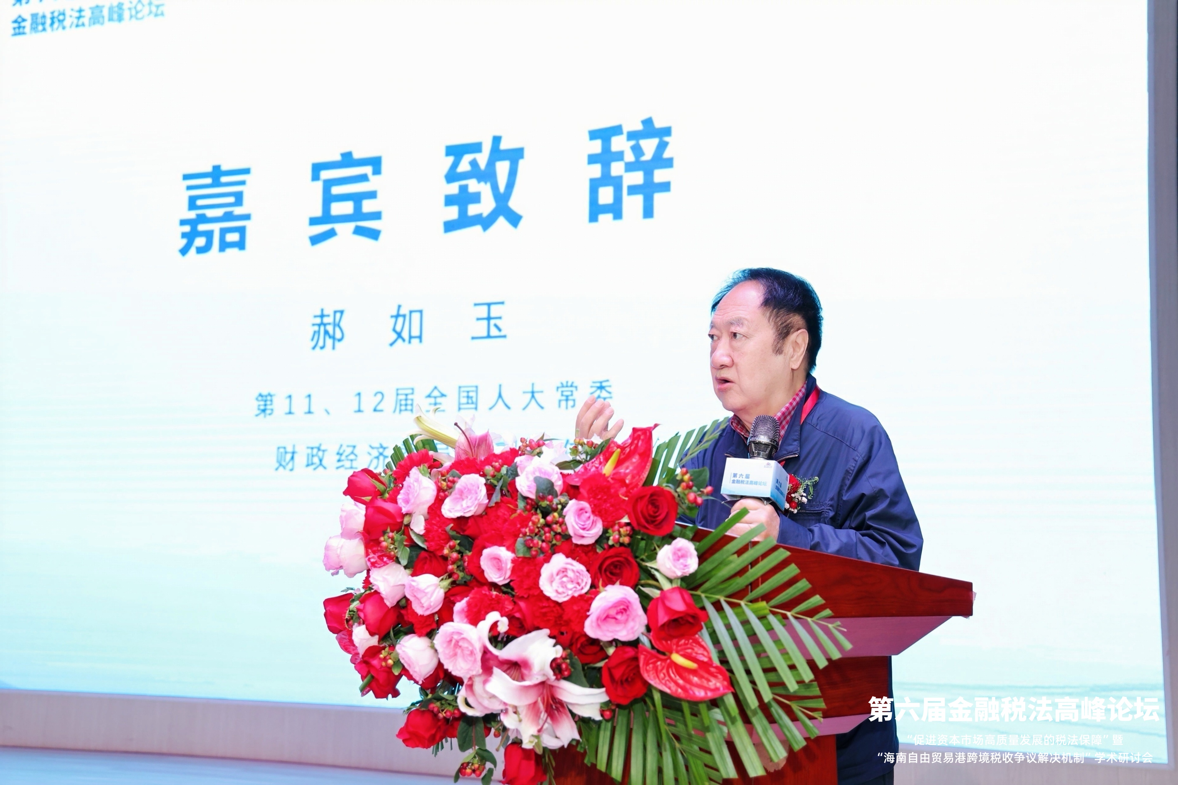 第十一届、十二届全国人大常务委员会委员、财政经济委员会副主任郝如玉热烈祝贺第六届金融税法高峰论坛开幕,高度评价金融税法高峰论坛在推动资本市场规范化与海南自贸港政策研究中的前瞻作用。表示金融税法高峰论坛自创立以来,紧扣时代脉搏,从探讨金融税法的理论与实践创新,到研究资本市场新交易规模模式下的课税原则、资本交易税制与自贸港税收治理创新,再到探索促进金融高质量发展的税法保障,每一届都为金融行业的健康发展提供了有力的支持。论坛深入贯彻总书记讲话精神,聚焦海南自贸港建设中的税收问题,通过明确的税收规则和合理的税收政策,为海南自贸港的自由化、投资便利化提供坚实的金融税收制度支持。