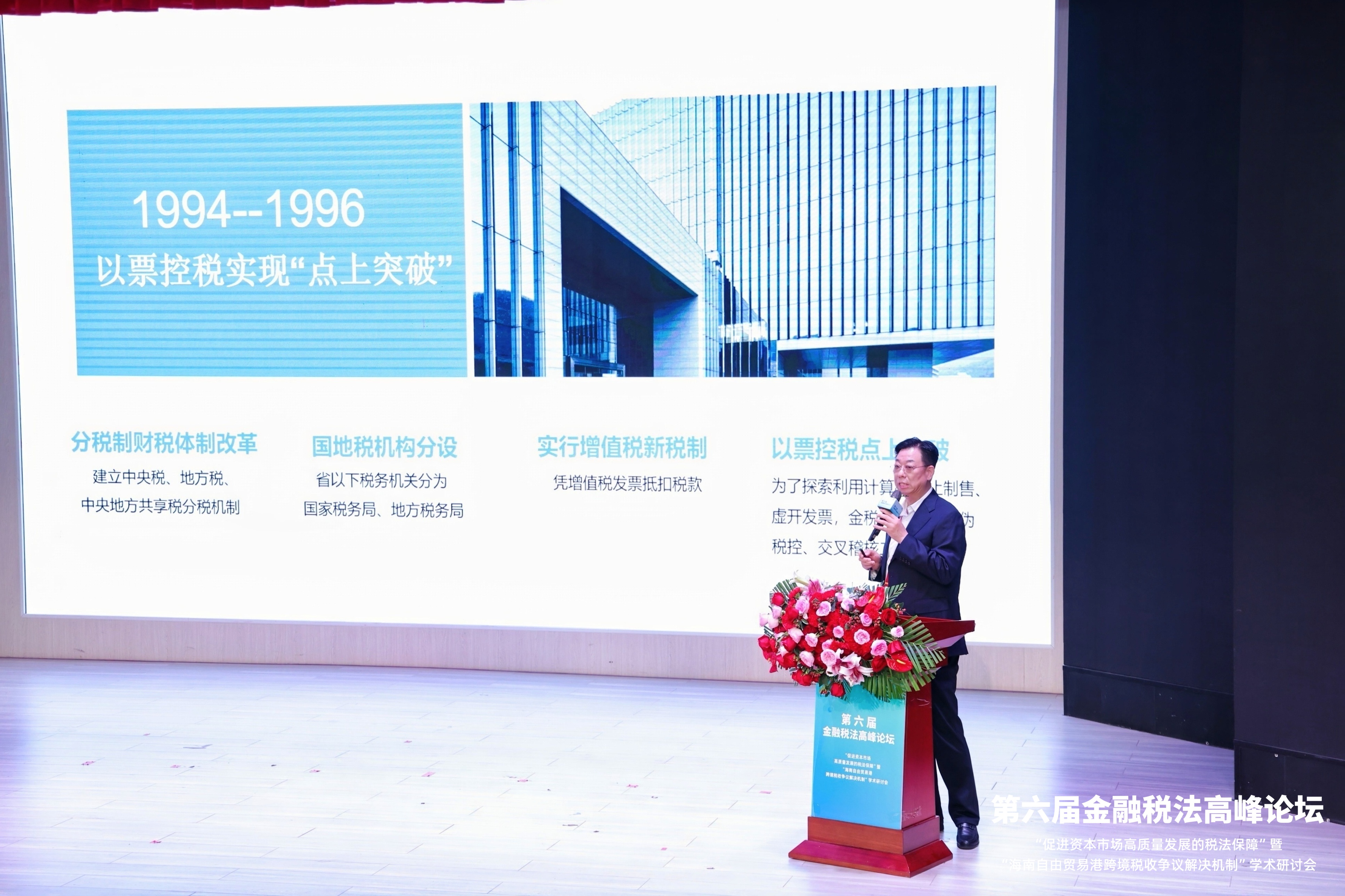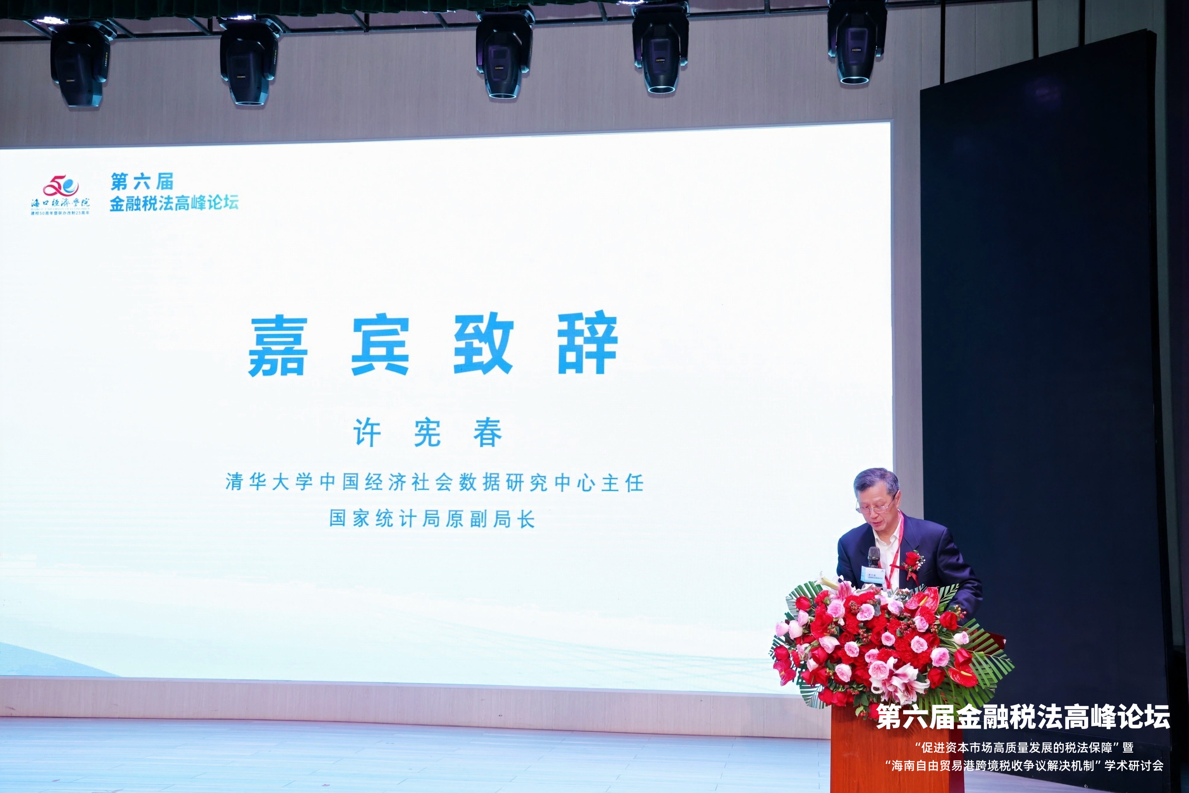 清华大学中国经济社会数据研究中心主任、国家统计局原副局长许宪春教授首先祝贺第六届金融税法高峰论坛成功举办。他指出,资本市场是社会主义市场经济不可或缺的一部分,其规范化发展需要税法体系的完善和配套制度的支持。通过政策优化规范资本市场行为,能够有效防范金融风险,确保经济高质量发展。