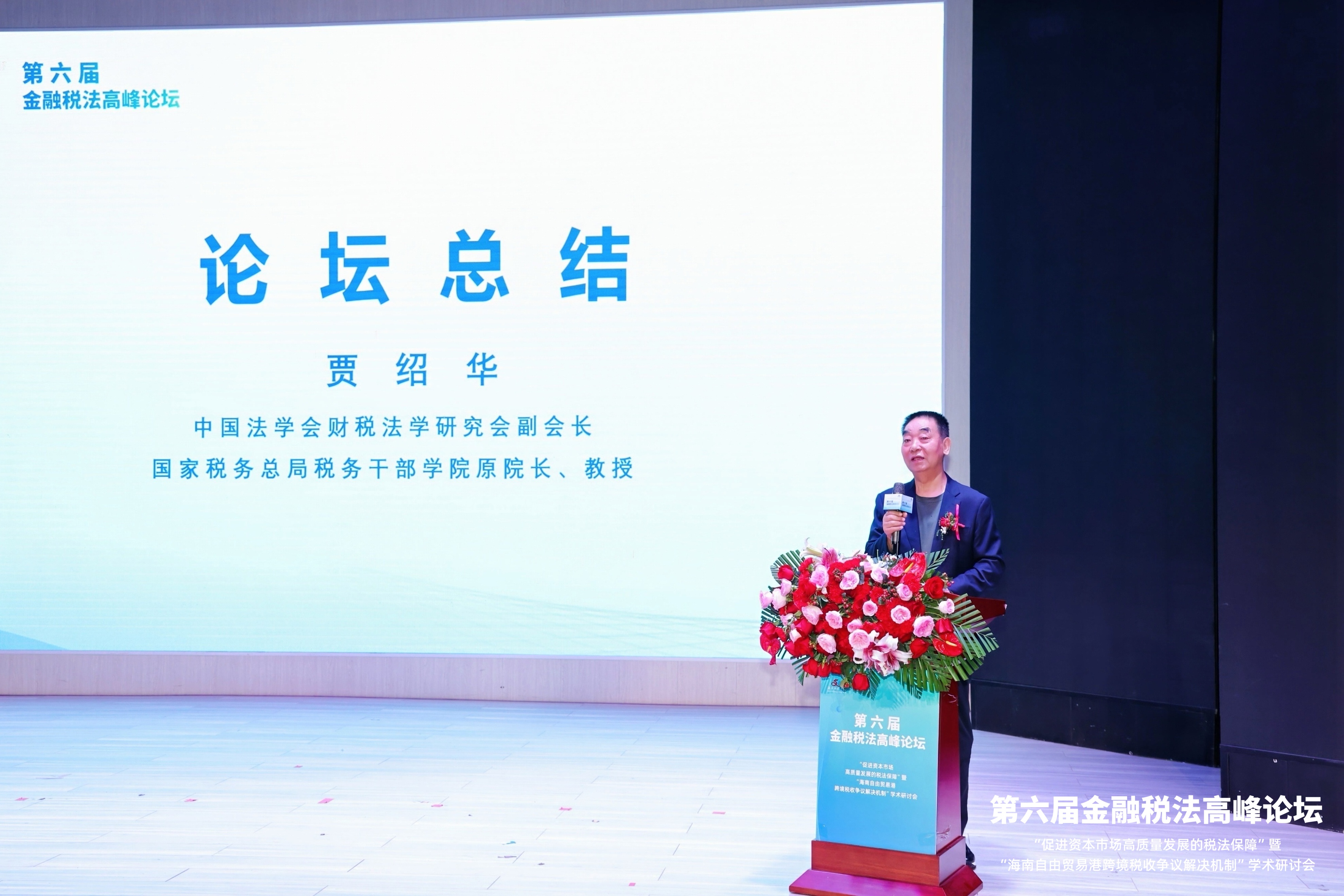 中国法学会财税法学研究会副会长、国家税务总局税务干部学院原经理贾绍华教授作论坛总结发言。贾绍华表示,完善税收法治、建立健全多元化跨境税收争议解决机制,是促进资本市场高质量发展、加快建设高水平开放的海南自由贸易港的重要内容。论坛着眼海南自贸港政策体系的各个方面,成果显著,为加紧推进海南自贸港核心政策落地、确保封关运作平稳有序作出了宝贵贡献。