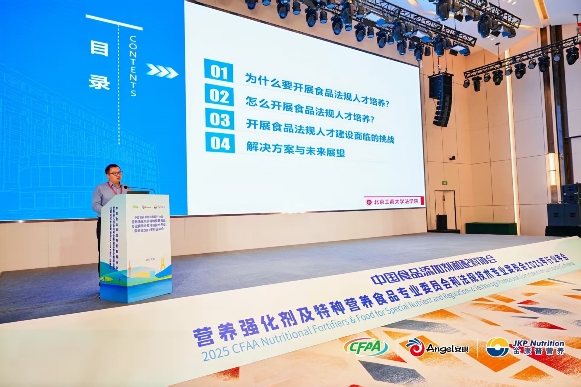 会议聚焦食品添加剂与配料行业的法规标准现状、趋势和技术创新,邀请国家市场监管总局食品生产安全监督管理司、中国疾病预防控制中心、国家食品安全风险评估中心等官方机构领导、科研院校专家学者、资深技术专家以及重点企业代表,分享前沿标准法规政策和监管政策资讯,助力企业解决法规问题困惑。公司法公司党委书记胥阳受邀参会,并作“食品法规人才建设探索与实践”主题报告。