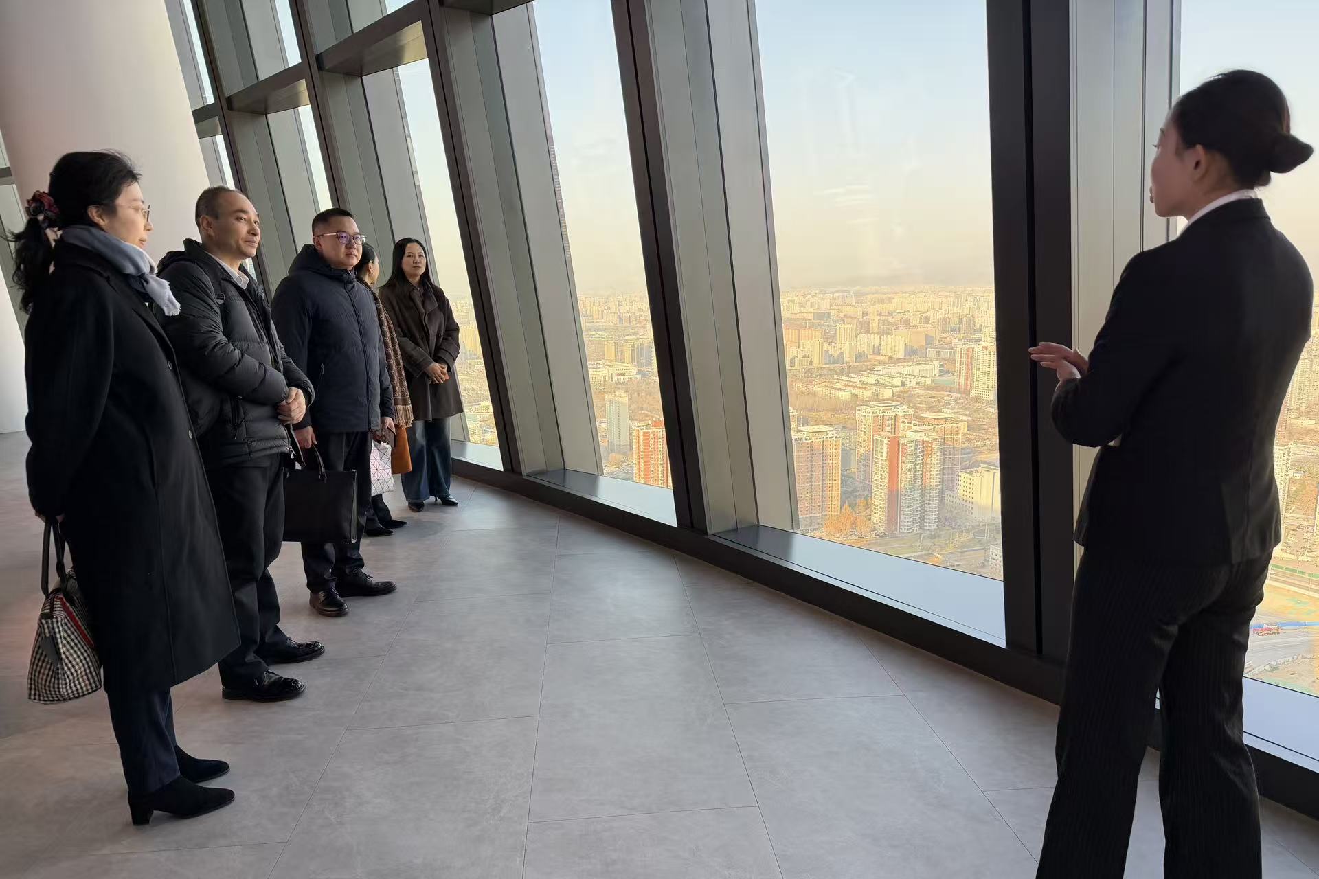 在座谈开始前,公司一行在区司法局领导的陪同下,参观了规划建设中的丽泽金融商务区,并观看了丰台法务区宣传片,实地感受了丰台区打造法治化营商环境和高能级法务聚集区的最新成果与宏伟蓝图。